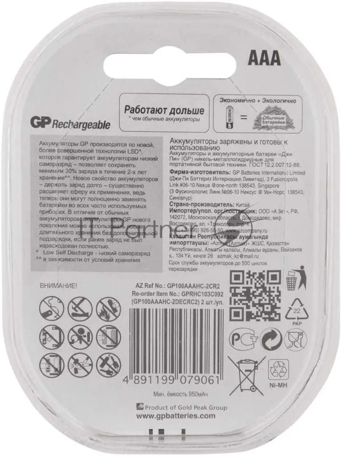 Аккумулятор GP 100AAAHC-CR2 1000mAh AAA 2шт