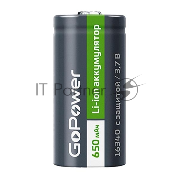 Аккумулятор Li-ion GoPower 16340 PK1 3.7V 650mAh с защитой (1/8/400)