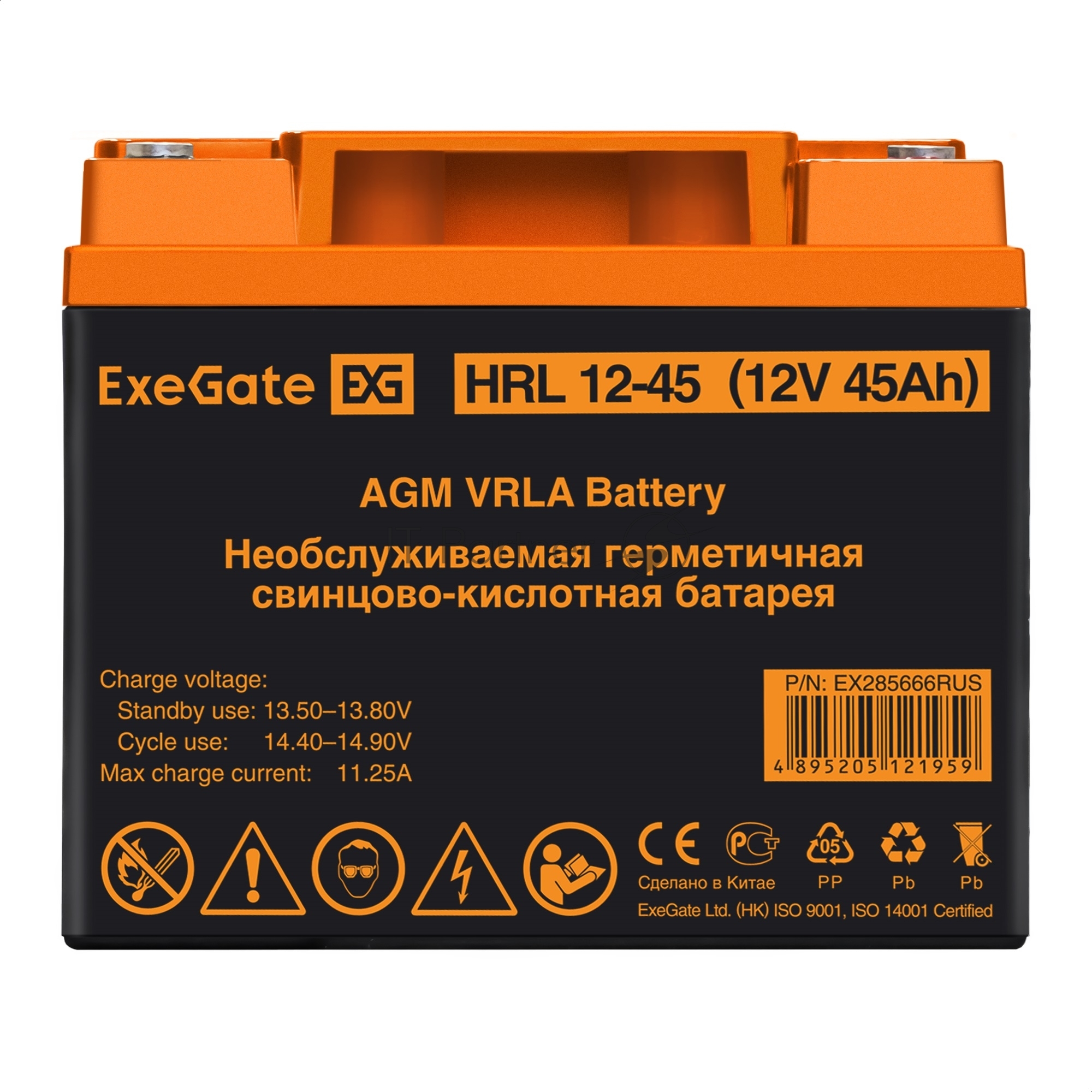 Аккумуляторная батарея ExeGate HRL 12-45 (12V 45Ah, под болт М6)