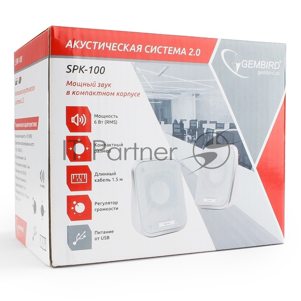Акустич. система 2.0 Gembird SPK-100-W, белый, 6 Вт, регулятор громкости, USB-питание