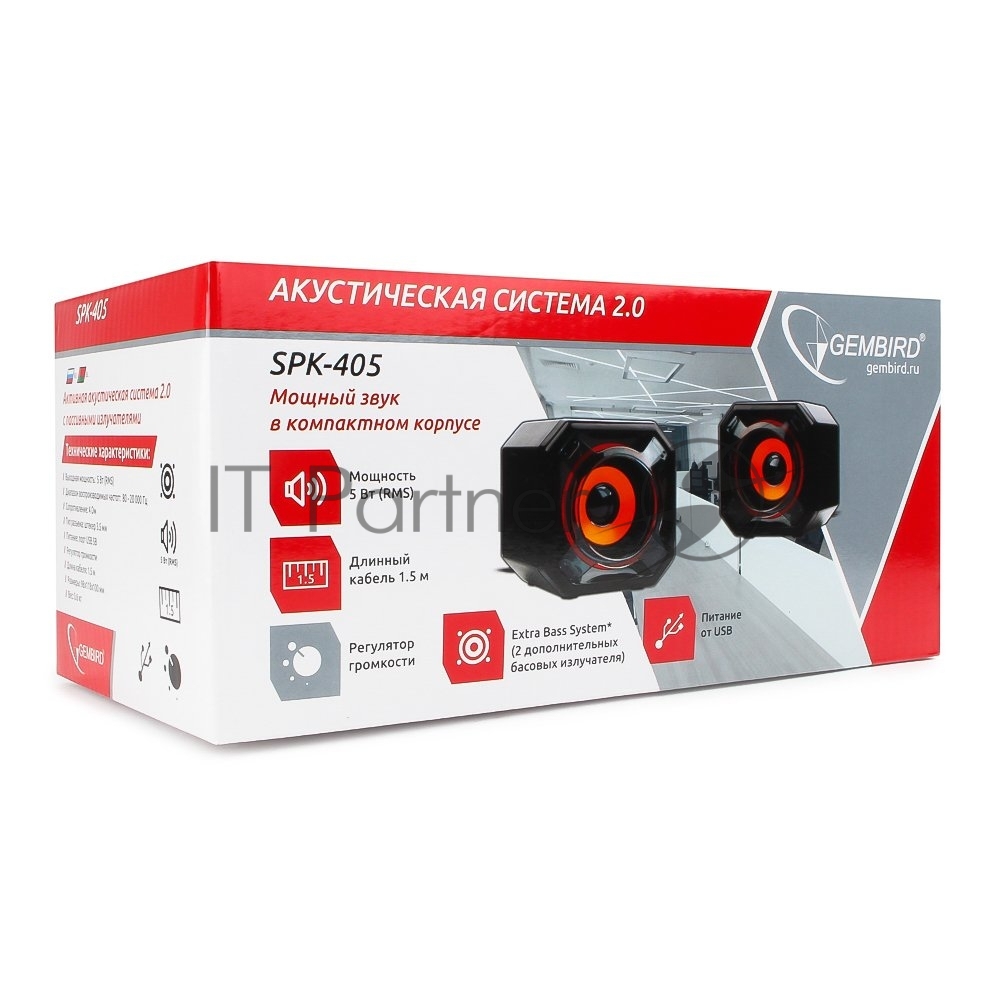 Акустич. система 2.0 Gembird SPK-405, пассив. излучатели, черный, 5 Вт, рег. громкости USB-питание
