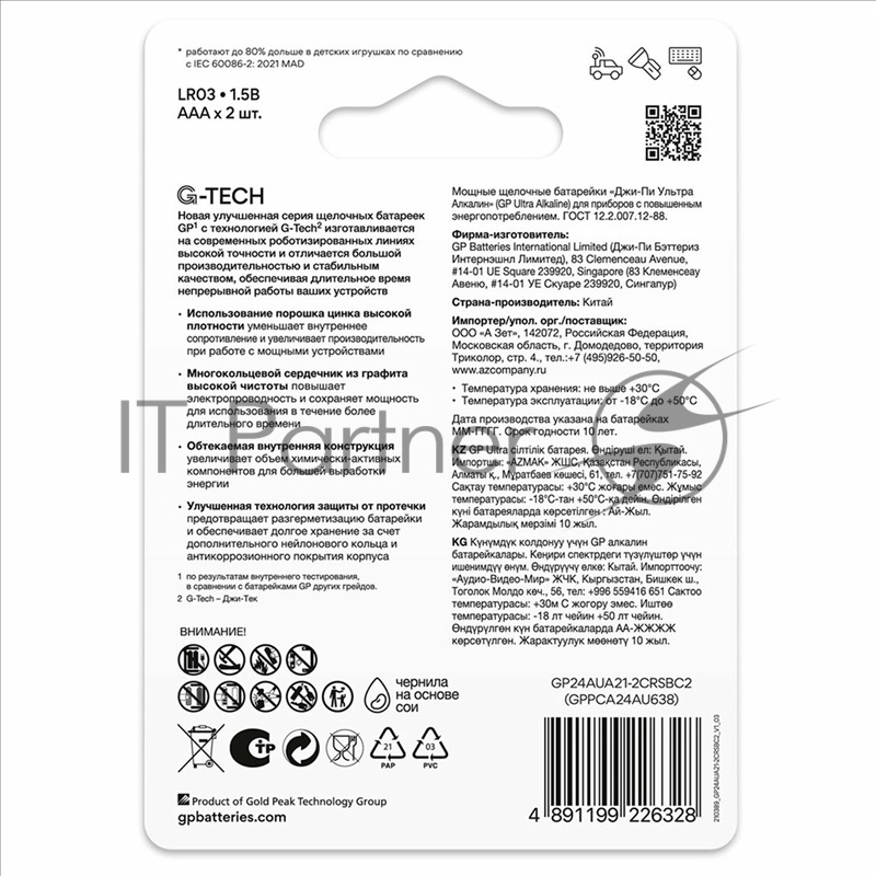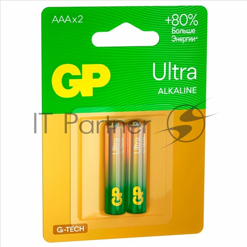 Алкалиновые батарейки GP Ultra Alkaline G-Tech 24А AАA — 2 шт. на блистере