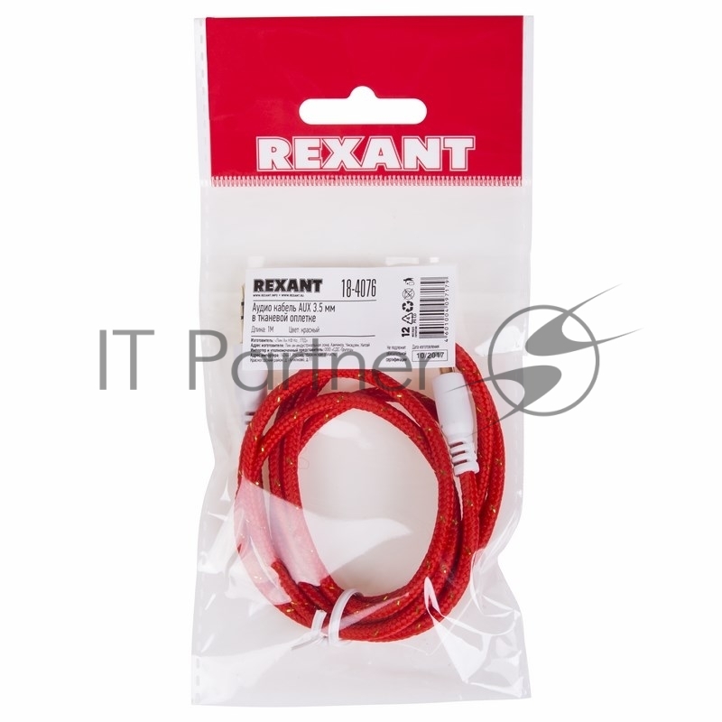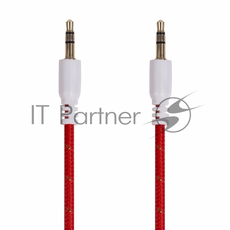 Аудиокабель AUX 3.5 мм в тканевой оплетке 1 м красный REXANT