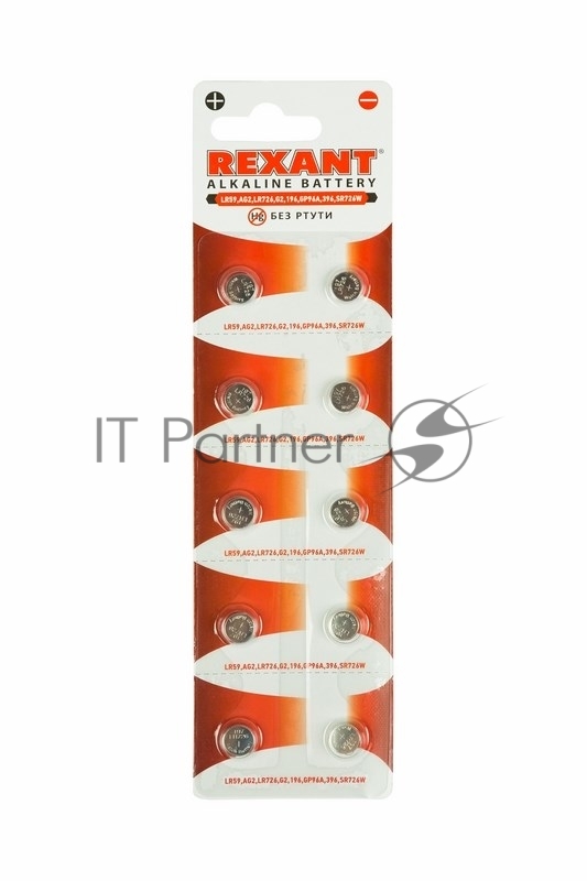 Батарейка LR59, AG2, LR726, G2, 196, GP96A, 396, SR726W REXANT