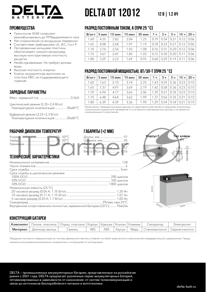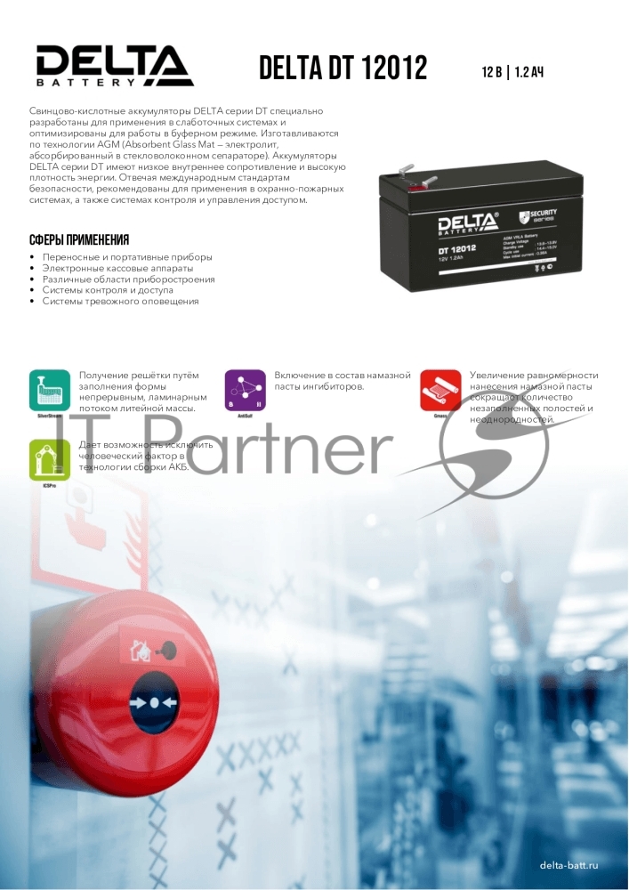 Батарея Delta DT 12012 (12V, 1.2Ah)