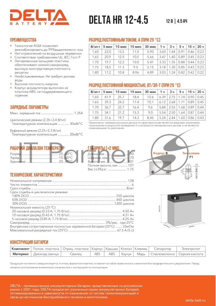 Батарея Delta HR 12-4.5 (12V, 4.5Ah)