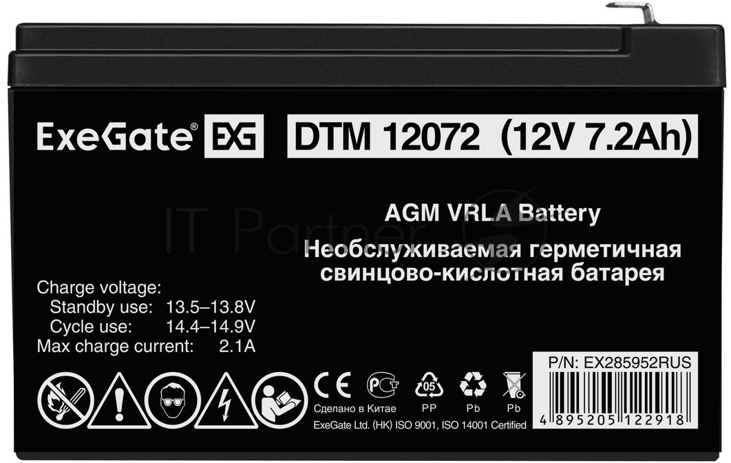 Батарея ExeGate EX285952RUS DTM 12072 (12V 7,2Ah, клеммы F1)
