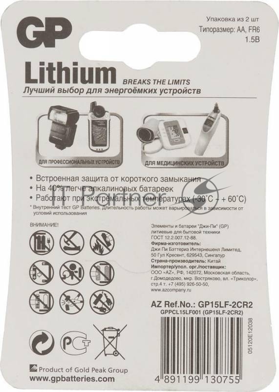 Батарея GP Lithium 15LF FR6 AA (2шт)