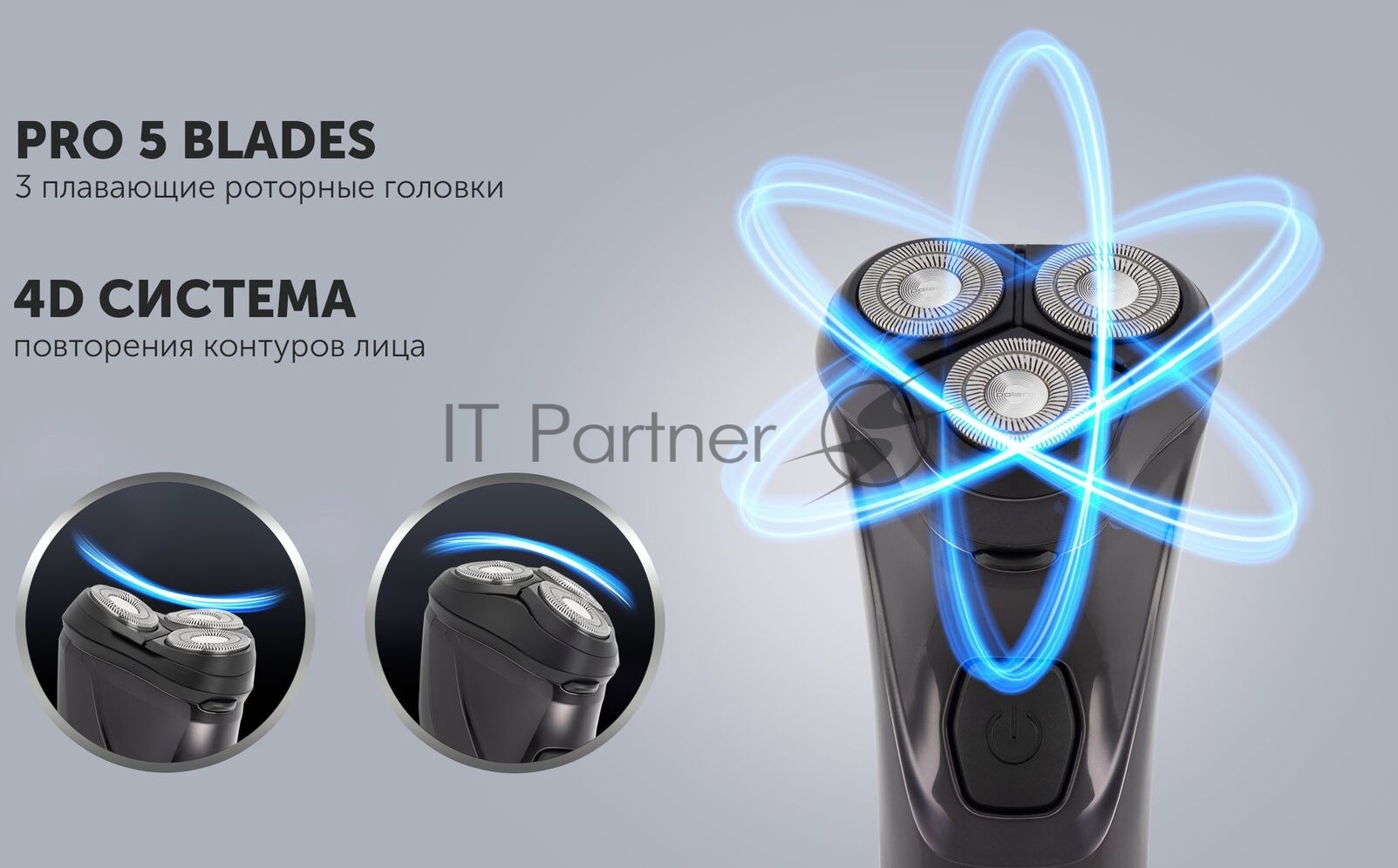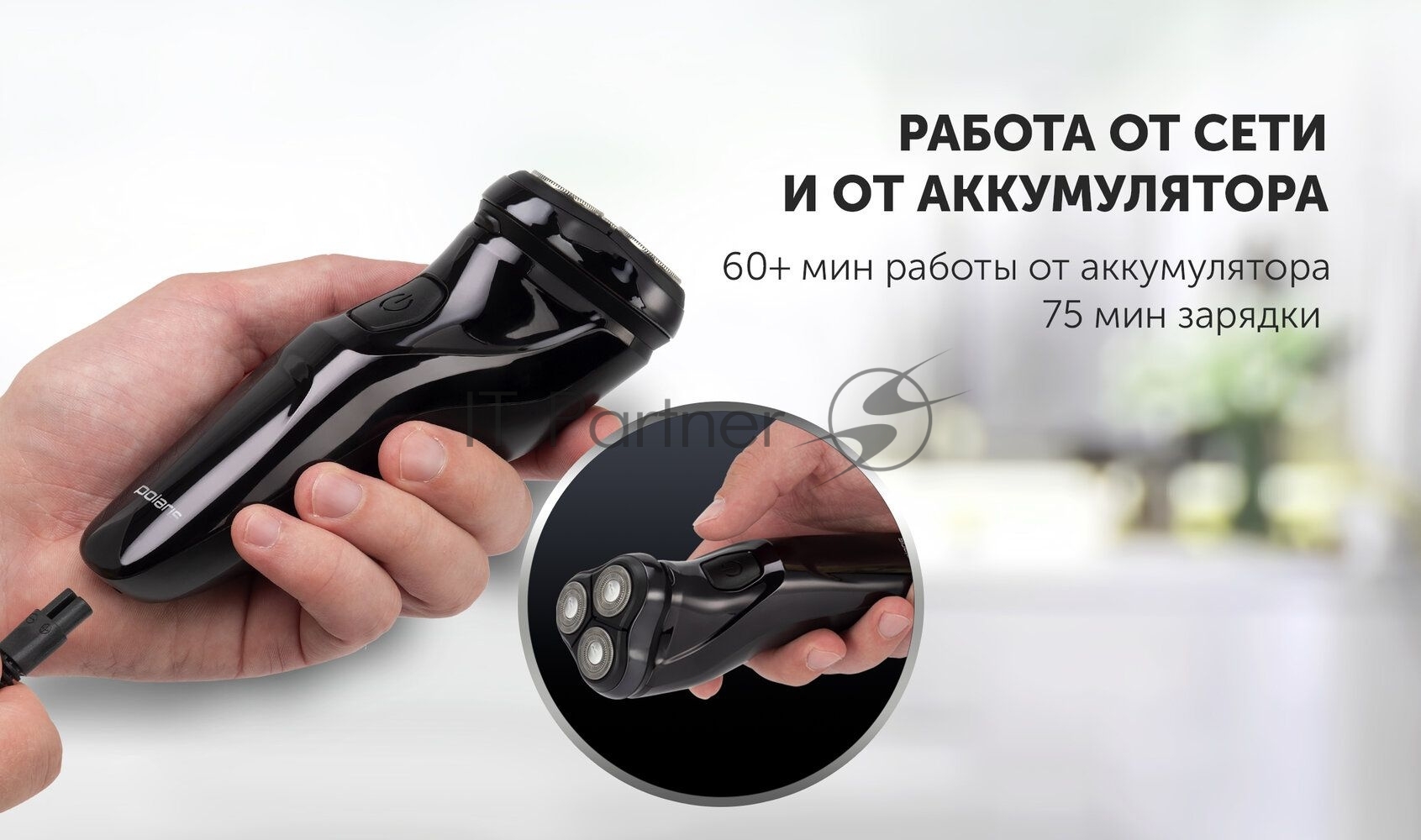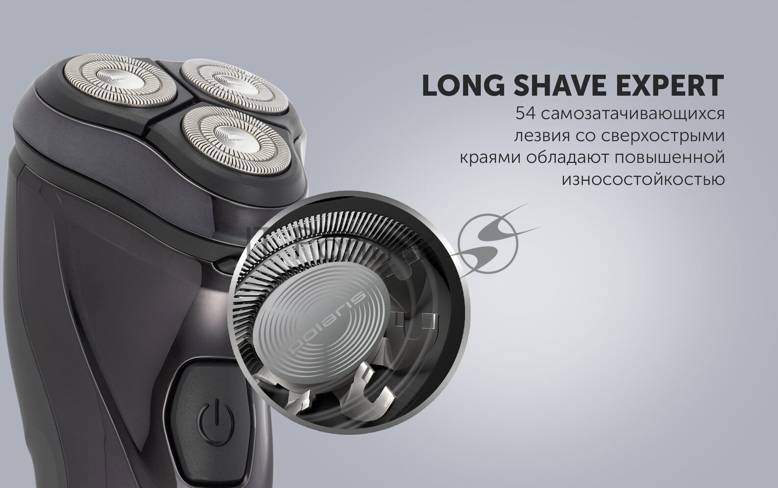 Бритва роторная Polaris WaterFlex PMR 0415R реж.эл.:3 питан.:элек.сеть/аккум. черный