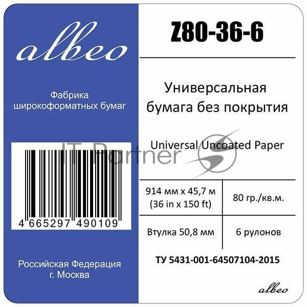 Бумага Albeo InkJet Paper, для плоттеров, универсальная, в рулонах, втулка 50,8 мм, белизна 146%, ширина рулона/длина/плотность