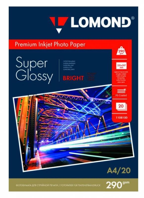 Бумага Lomond 1108100 A4/290г/м2/20л./белый высокоглянцевое для струйной печати
