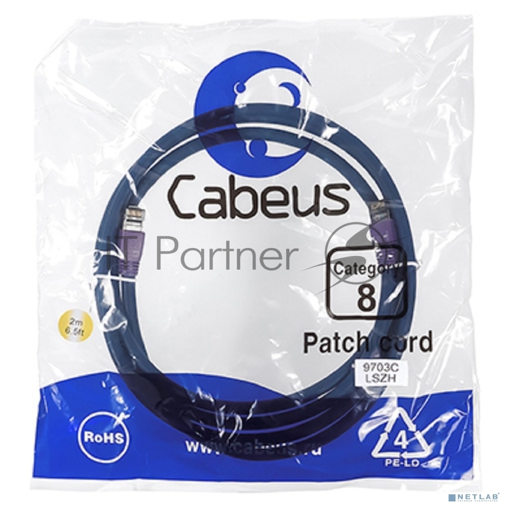 Cabeus PC-SSTP-RJ45-Cat.8-2m-LSZH Патч-корд S/FTP, категория 8 (40G, 2000 MHz), 2xRJ45/8p8c, экранированный, синий, LSZH, 2 м
