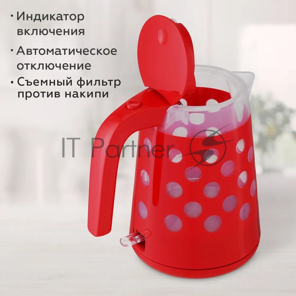 Чайник BQ KT1713P Red. Мощность:2200 Вт, Объем 1,7л, LED подсветка