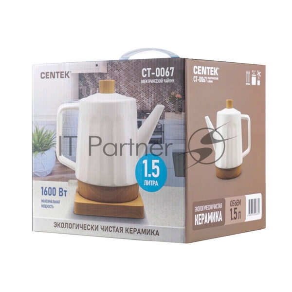 Чайник электрический Centek CT-0067 белый, 1.5 л, 1600 Вт