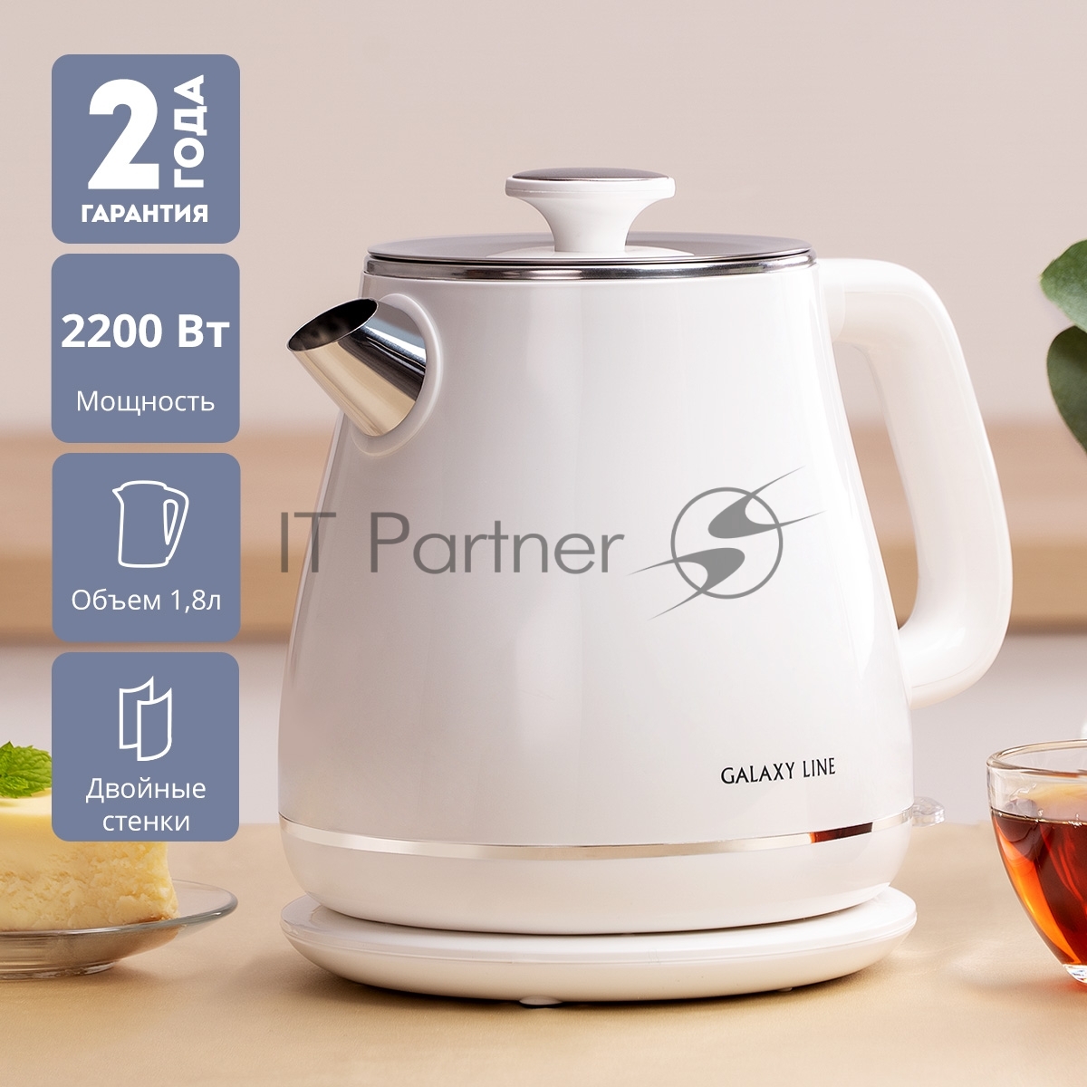 Чайник электрический Galaxy Line GL 0331, белый, пластик, 2200 Вт, 1,8 л
