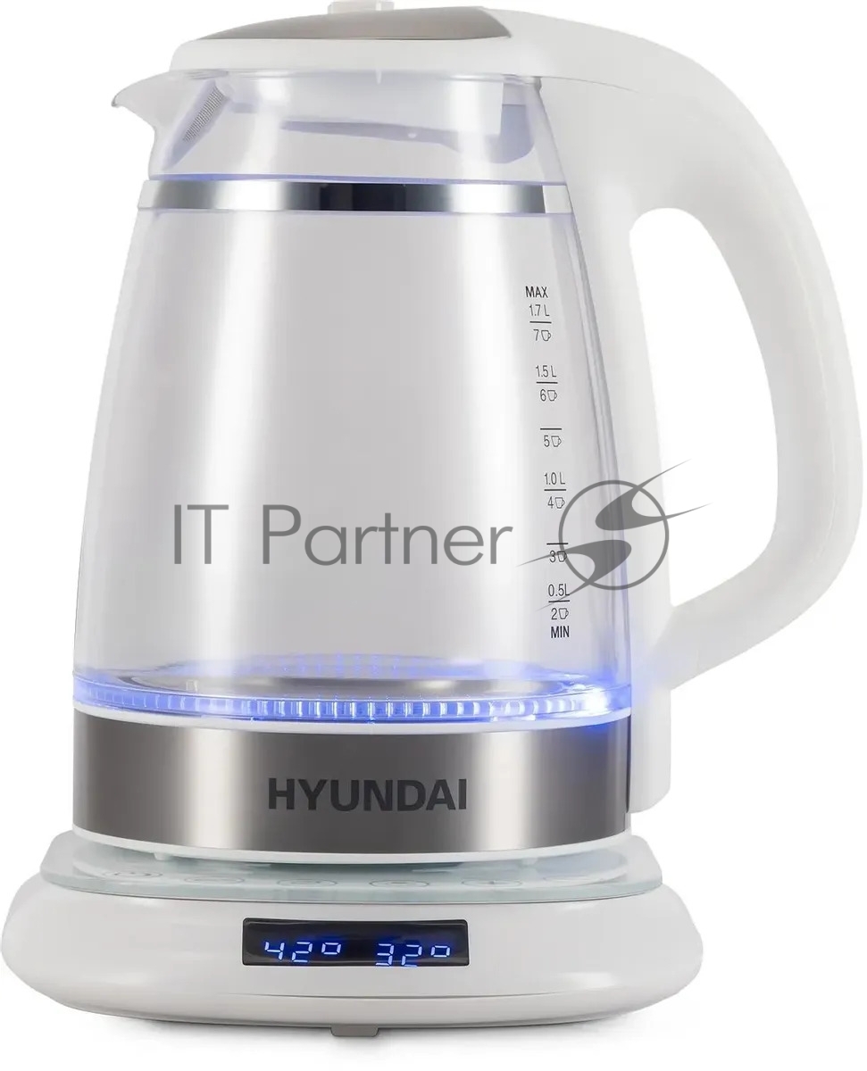 Чайник электрический Hyundai HYK-G5507 1.7л. 2200Вт белый/серебристый корпус: стекло