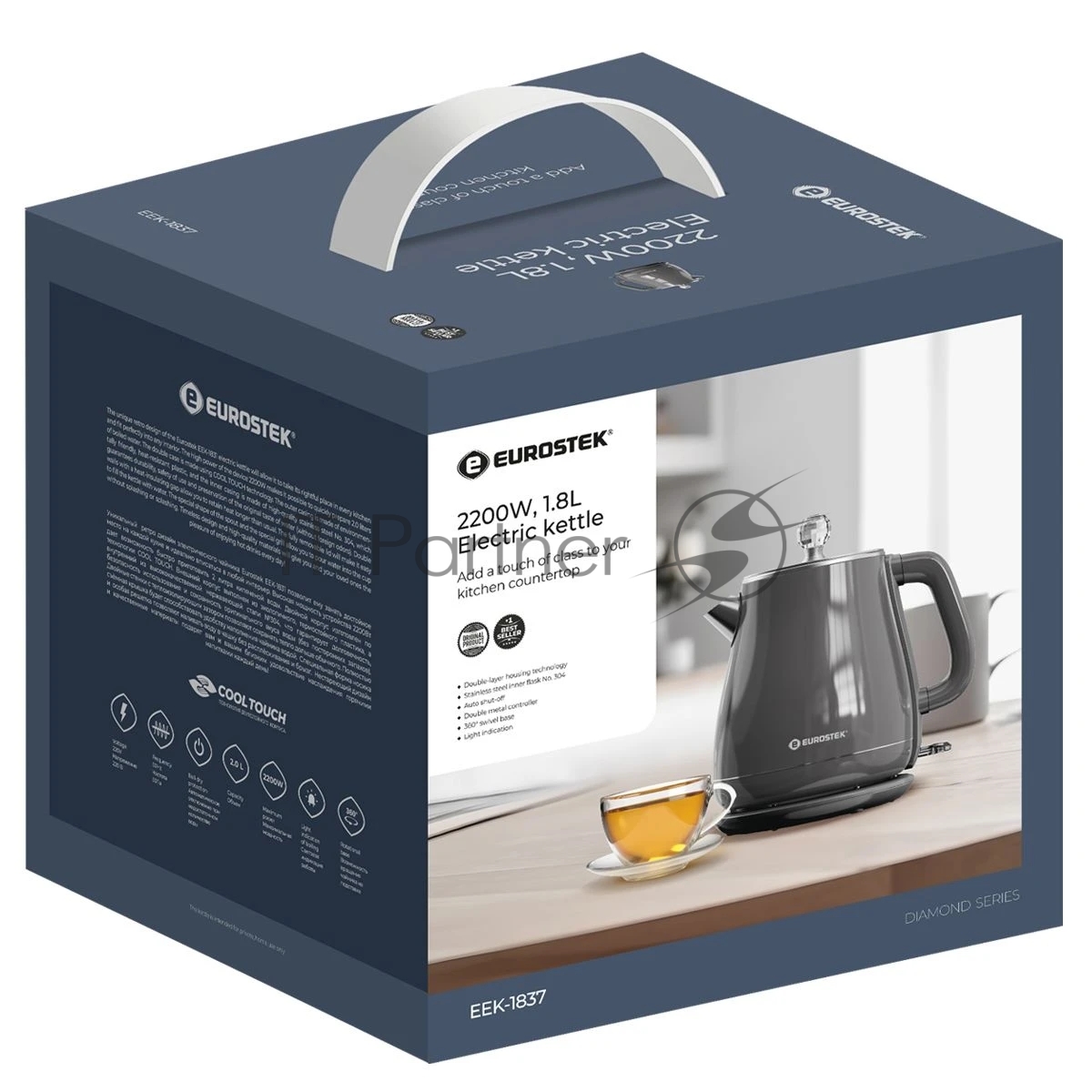 Чайник Eurostek EEK-1837 2200 Вт, 1,8 л, серый
