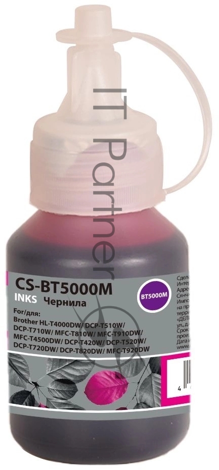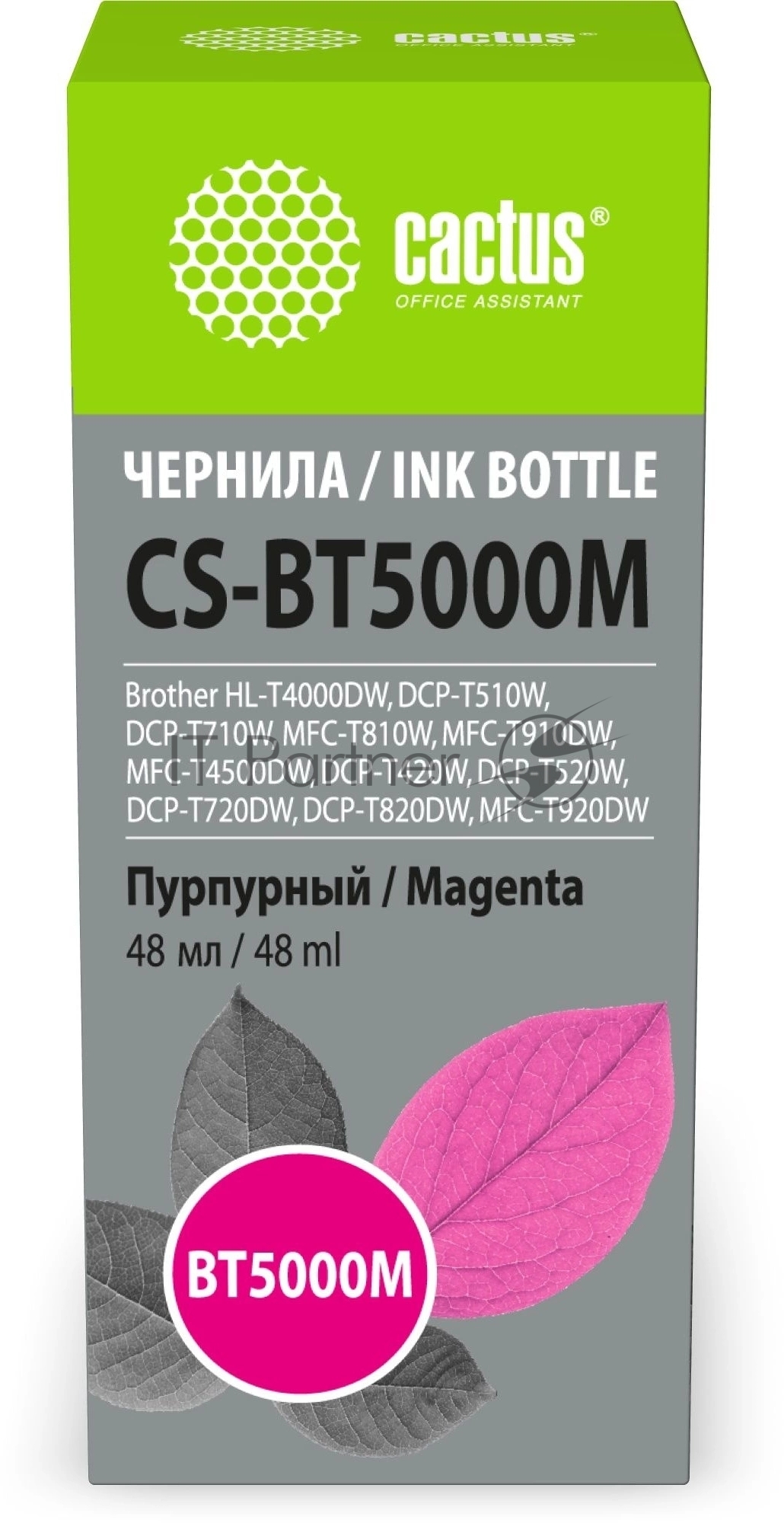 Чернила Cactus CS-BT5000M пурпурный 48мл для Brother HL-T4000DW, DCP-T510W, DCP-T710W, MFC-T810W, MFC-T910DW, MFC-T4500DW, DCP-T420W, DCP-T520W, DCP-T720DW, DCP-T820DW, MFC-T920DW