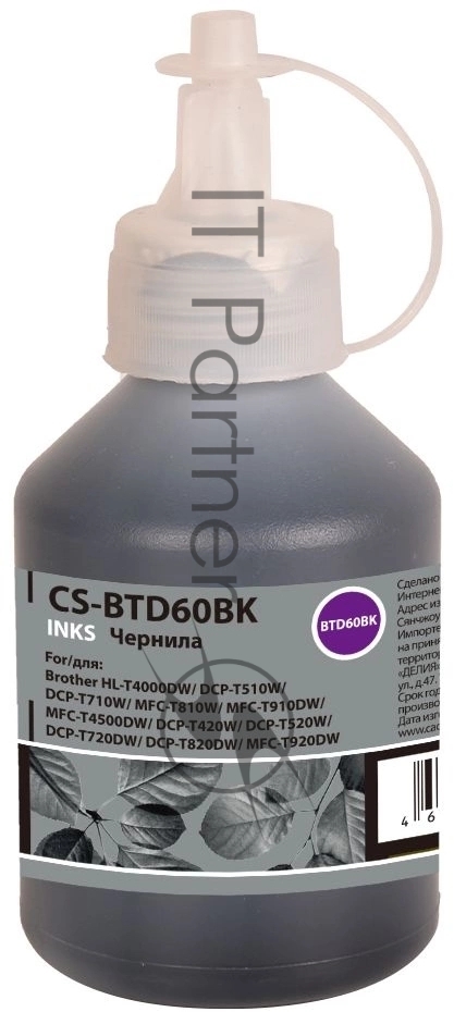 Чернила Cactus CS-BTD60BK черный 108мл для Brother HL-T4000DW, DCP-T510W, DCP-T710W, MFC-T810W, MFC-T910DW, MFC-T4500DW, DCP-T420W, DCP-T520W, DCP-T720DW, DCP-T820DW, MFC-T920DW