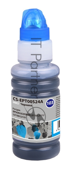 Чернила Cactus CS-EPT00S24A 103C, голубой, 70 мл для Epson Ecotank L1110, L3100, L3101, L3110, L3150, L3151, L3156, L3160