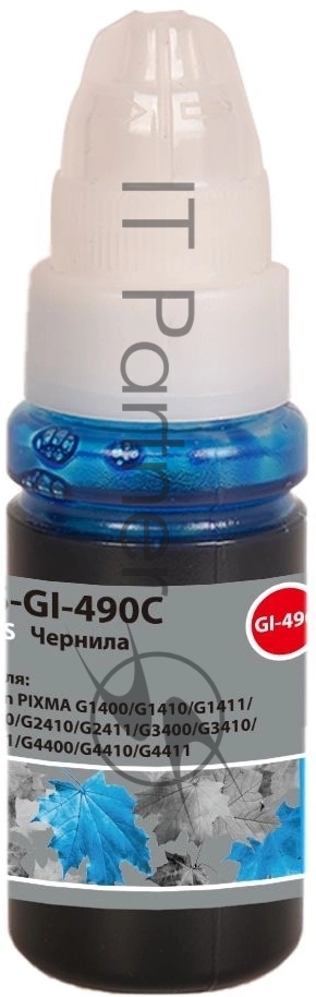 Чернила Cactus CS-GI-490C голубой 70мл для Canon PIXMA G1400/G1410/G1411/G2400/G2410/G2411/G3400/G3410/G3411/G4400/G4410/G4411
