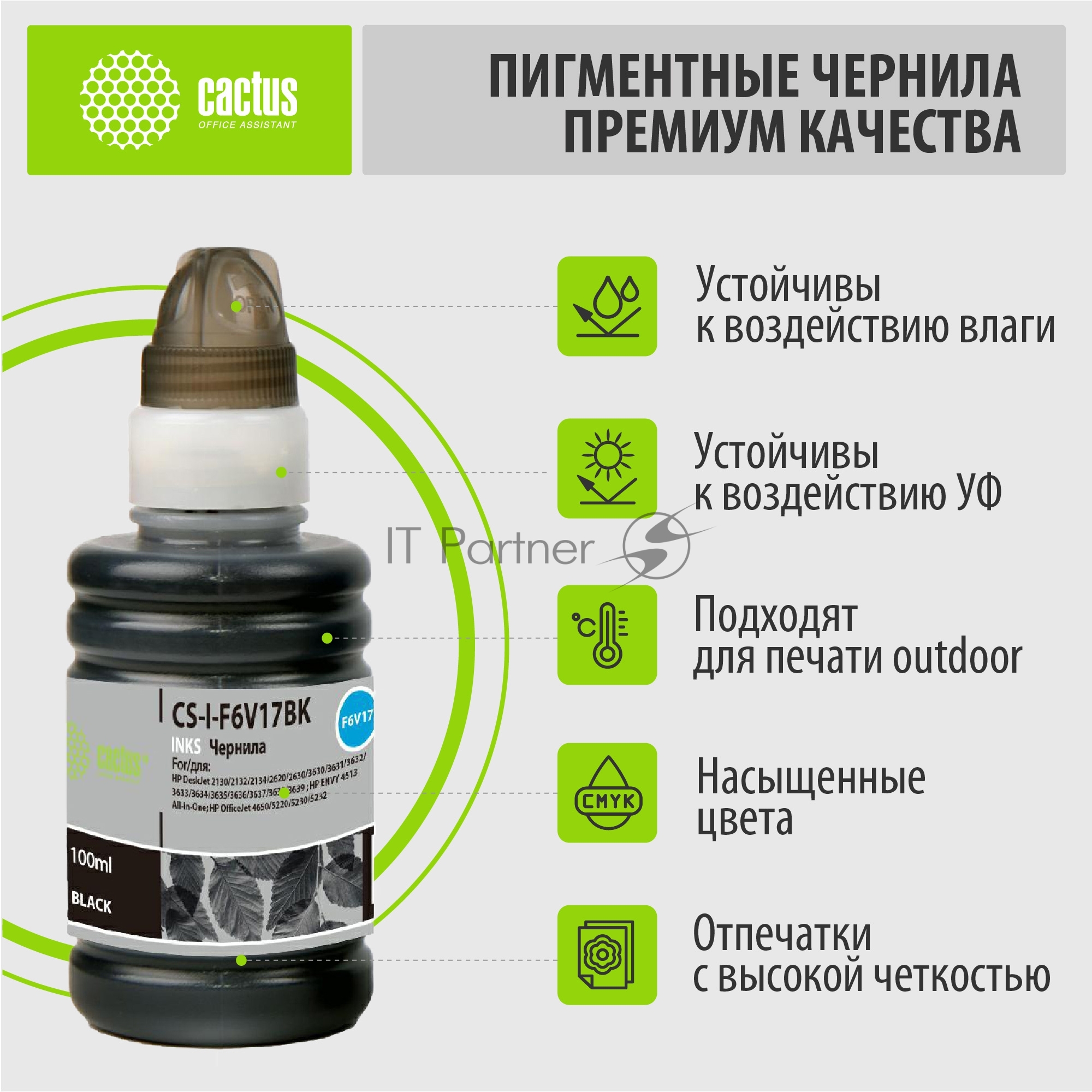 Чернила Cactus CS-I-F6V17BK черный100мл для HP DeskJet 2130/2132/2134/2620/2630/3630