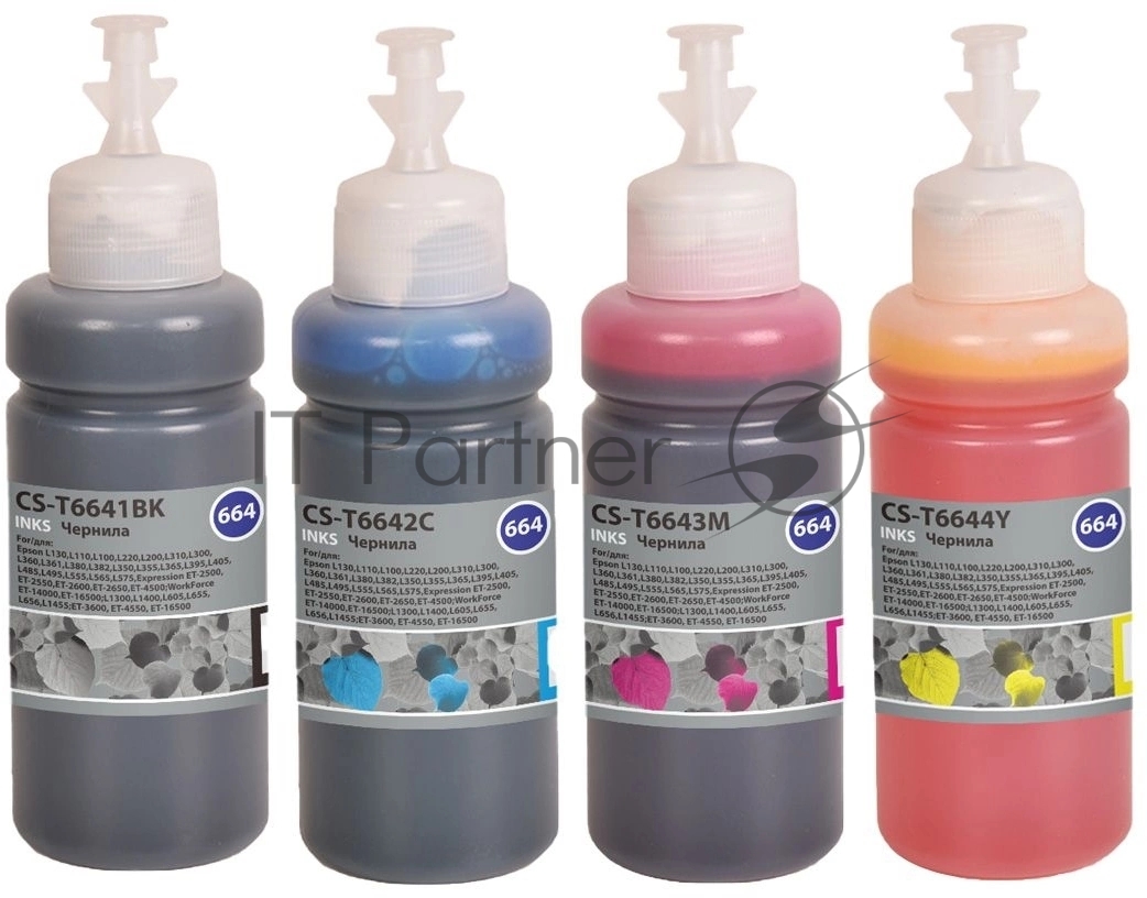 Чернила Cactus CS-T664set 664 голубой/пурпурный/желтый/черный набор 4×70мл для Epson L130,L110,L100,L220,L200,L310,L300,L360,L361,L380,L382,L350,L355,L365,L395,L405,L485,L495,L555,L565,L575,Expression ET-2500,ET-2550,ET-2600,ET-2650,ET-4500;WorkForce ET-14000,ET-16500;L1300,L1400,L605,L655,L656,L1455;ET-3600, ET-4550, ET-16500