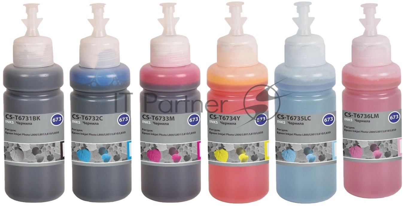 Чернила Cactus CS-T673set 673 черный/голубой/пурпурный/желтый/светло-голубой/светло-пурпурный набор 6×70мл для Epson Inkjet Photo L800/L801/L810/L850