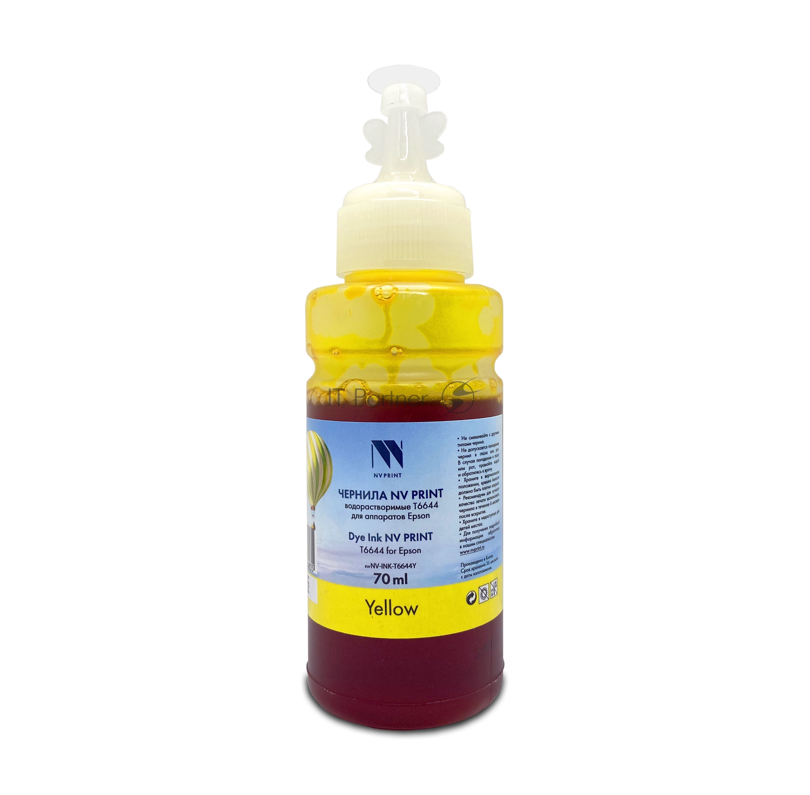 Чернила NV PRINT водорастворимые T6644 для аппаратов Epson L100, L110, L120, L132, L200, L210, L222, L300, L312, L350, L355, L362, L366, L456, L550, L555, L566, L1300, L386, L486, L121, L3050, L3060, L3070, L364, L382, L605, L655, L1455 (70 ml) Yellow