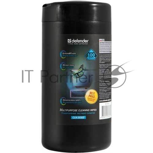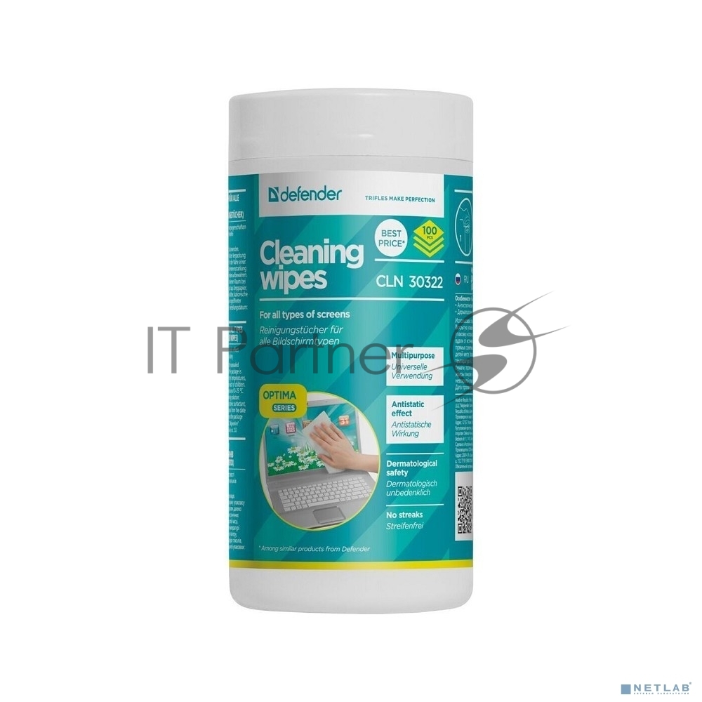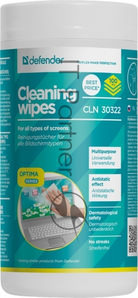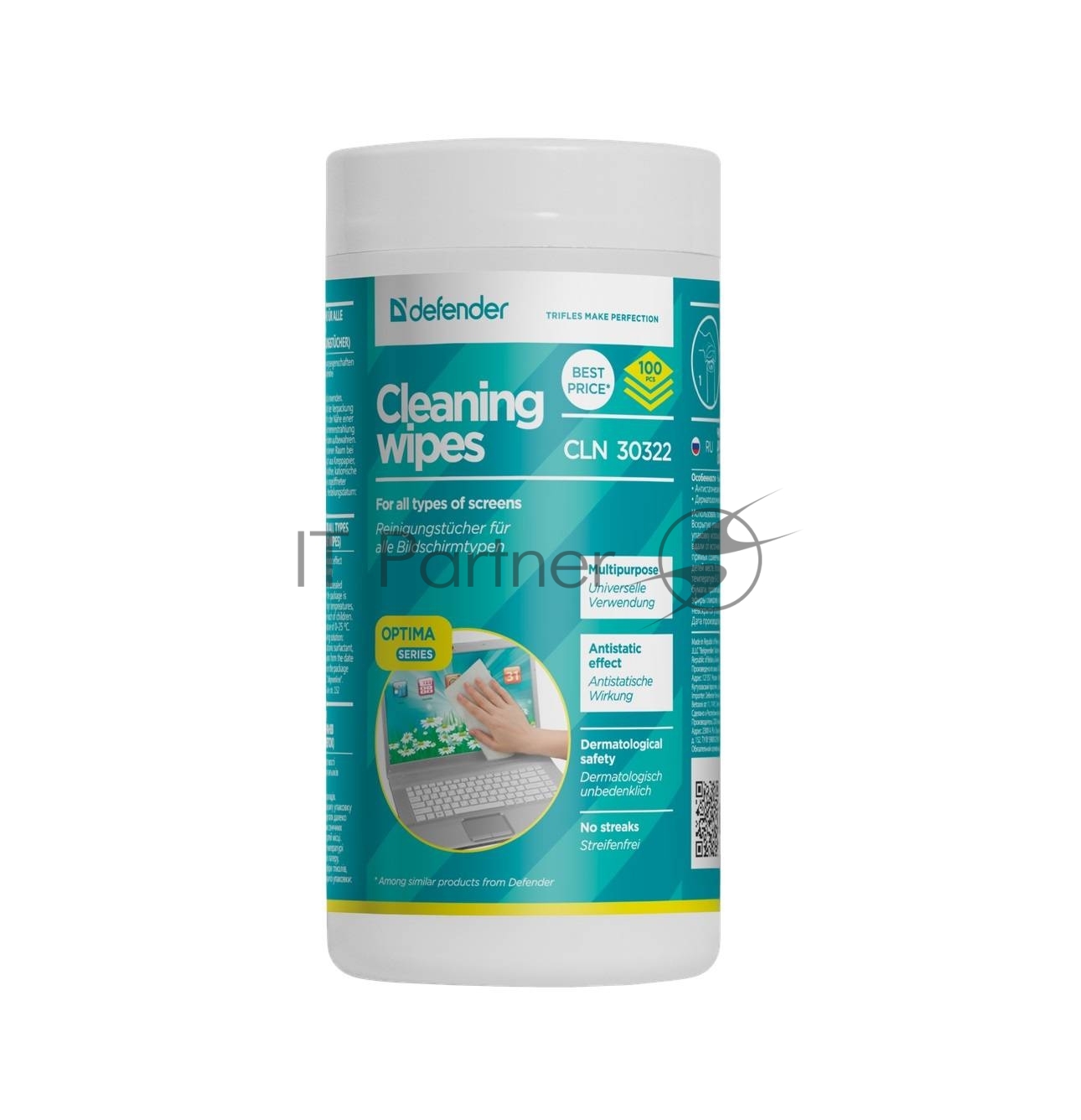 Чистящие салфетки Defender для экранов всех типов / нетканый материал / антистатик / туба /100 шт/ Россия.