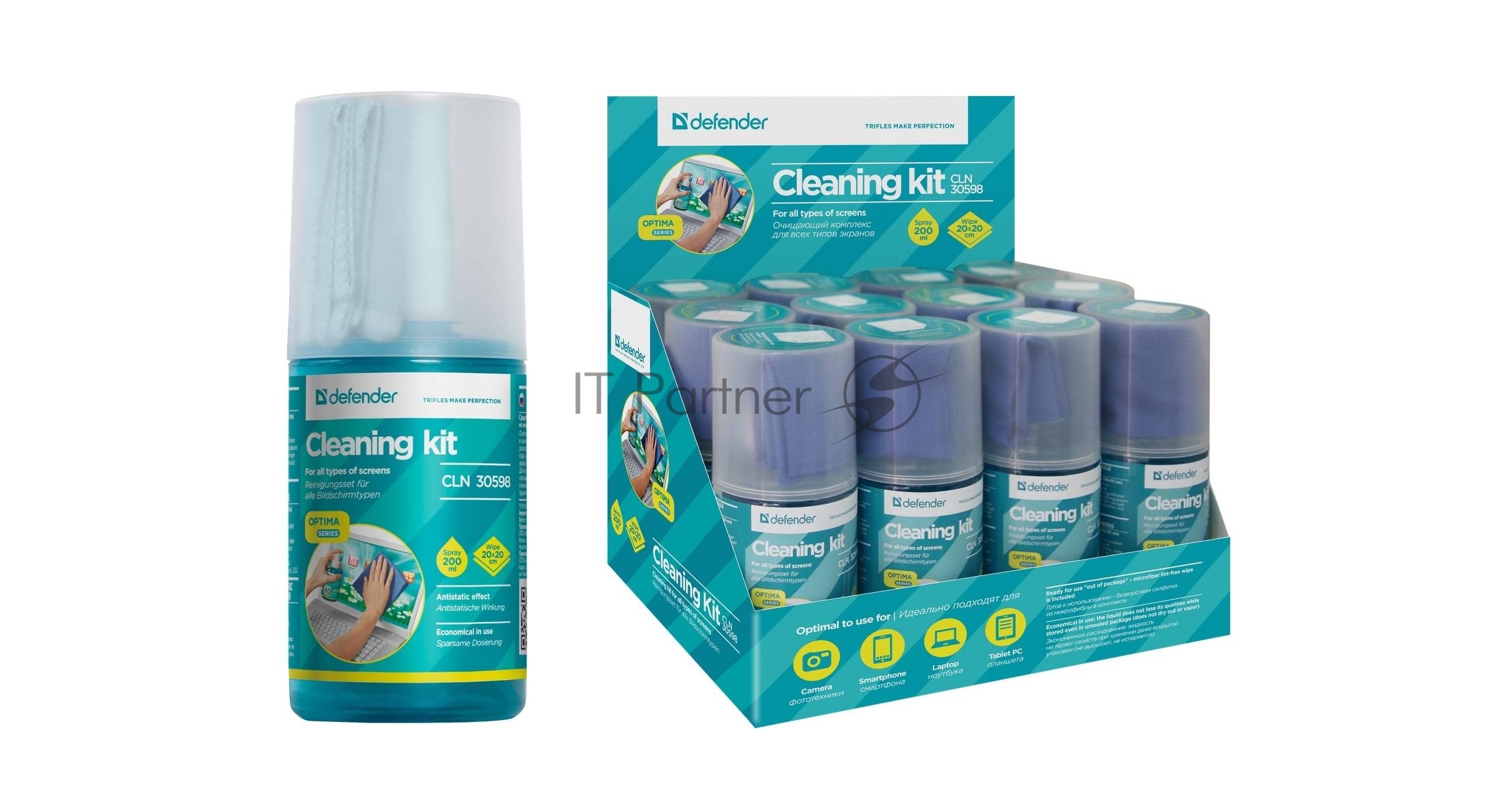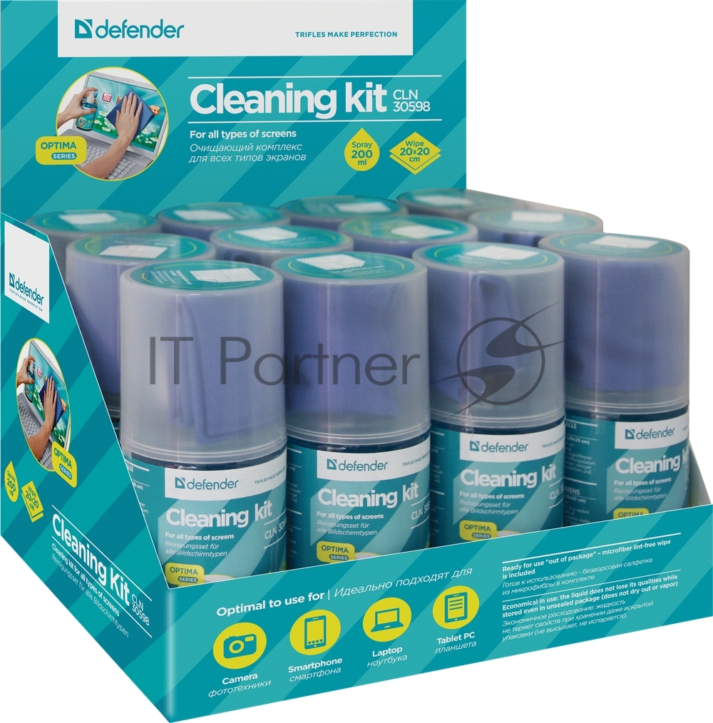 Чистящий спрей Defender для экранов / пластиковый флакон с пульверизатором 200 мл + микрофибра 20 х 20 см / Беларусь.