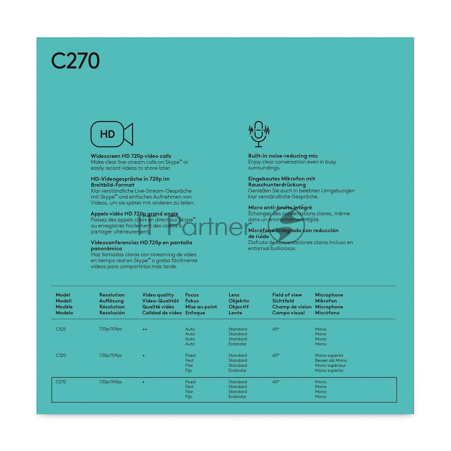 Цифровая камера Logitech Webcam HD Pro C270, 3MP, 1280×720, Rtl