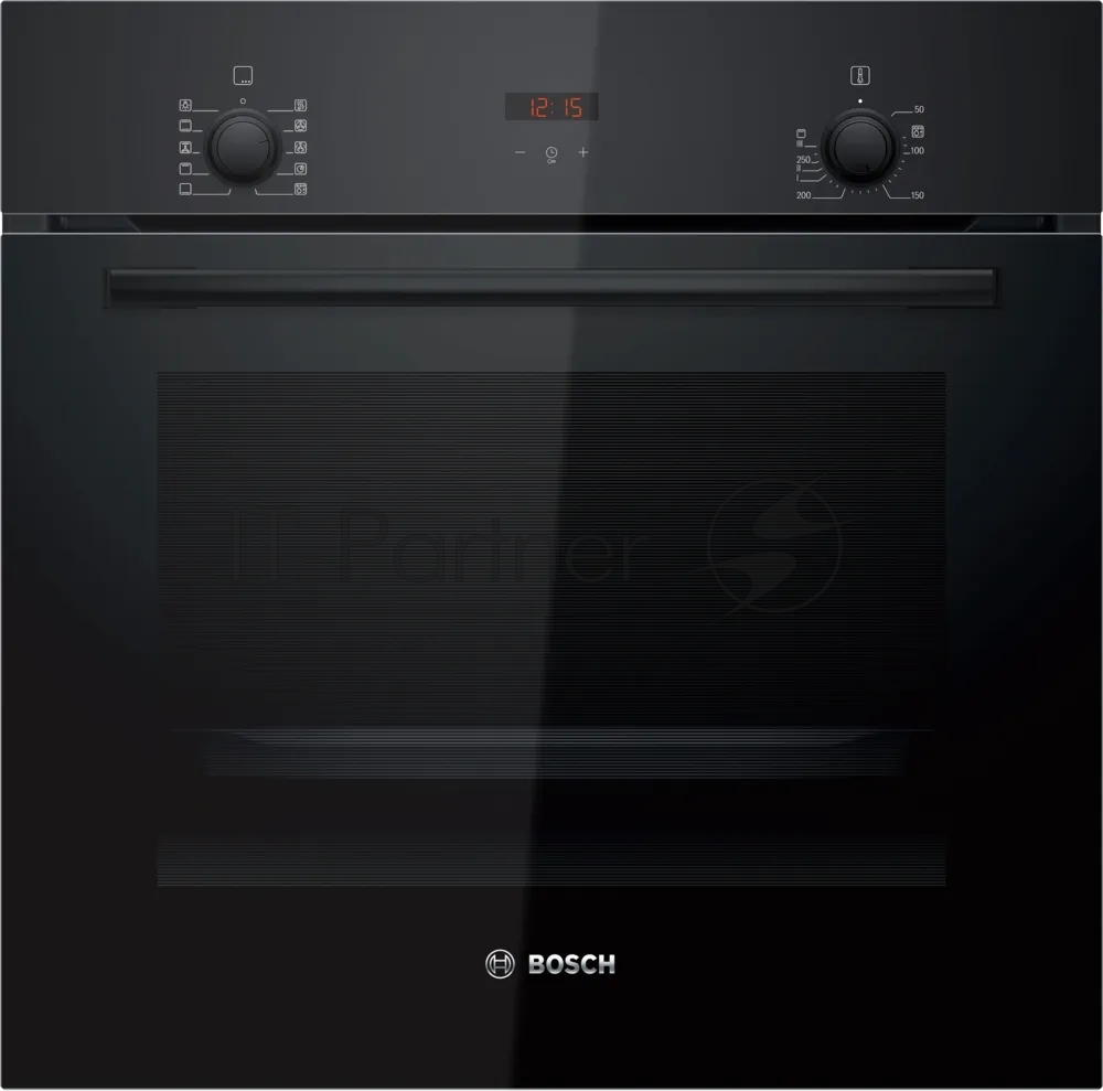 Духовой шкаф электрический Bosch HBF512BB1T Serie 2, духовой шкаф, черный, класс энергоэффективности А, 7 режимов, 3-х слойное остекление, LED-дисплей, утапливаемые переключатели, галогенное освещение, проволочные направляющие, сделано в Турции,