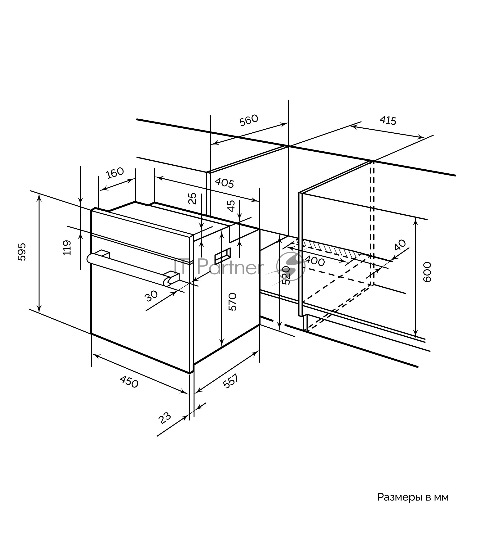 Духовой шкаф LEX EDM 4570 IX 55 л, таймер, 7 функций, встраиваемый