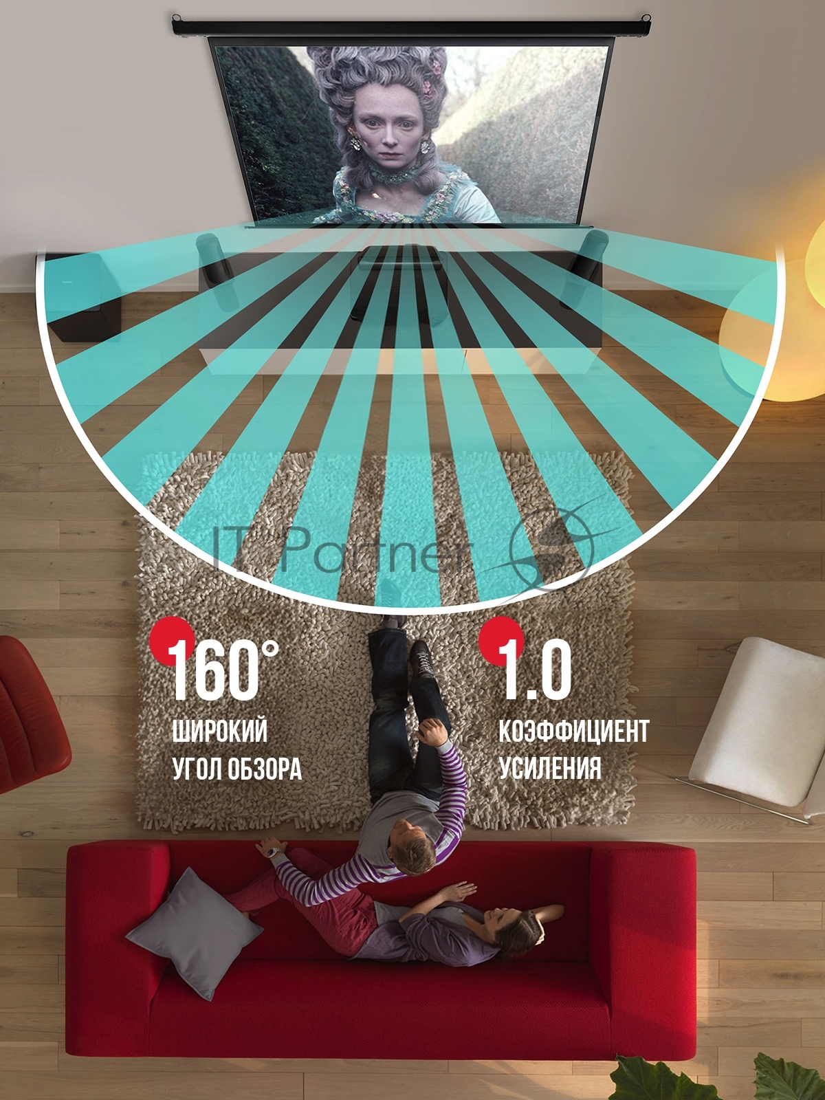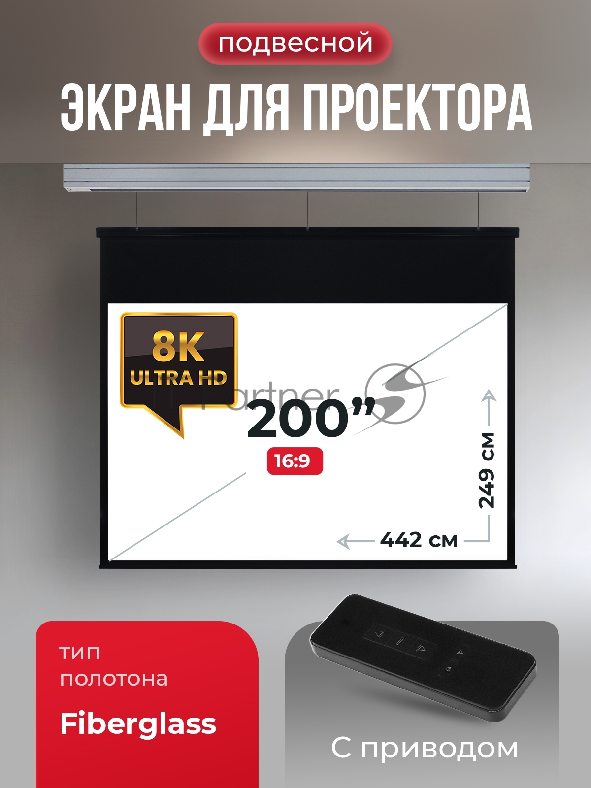 Экран для проектора S’OK Athena SGPSMS-442×249 на тросах с электроприводом, матовый, белый к