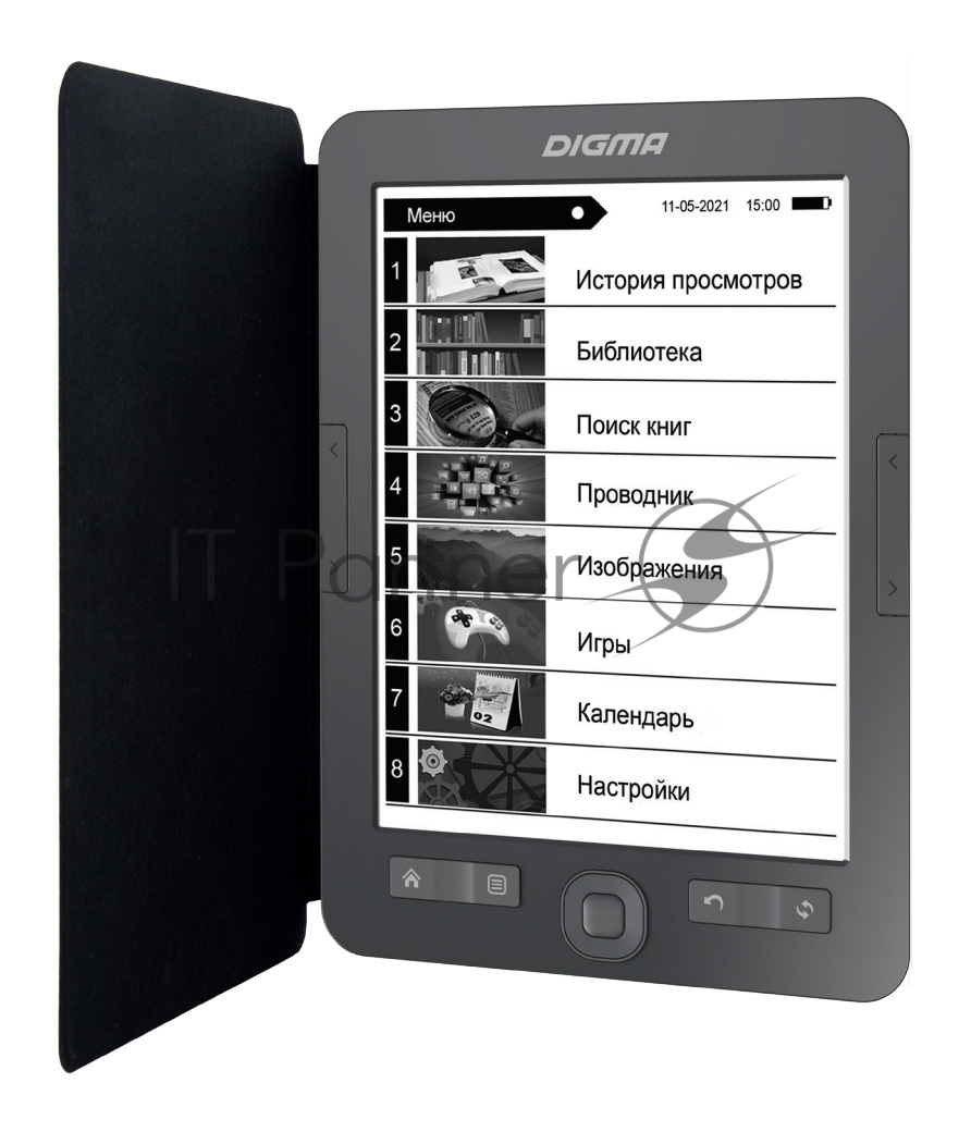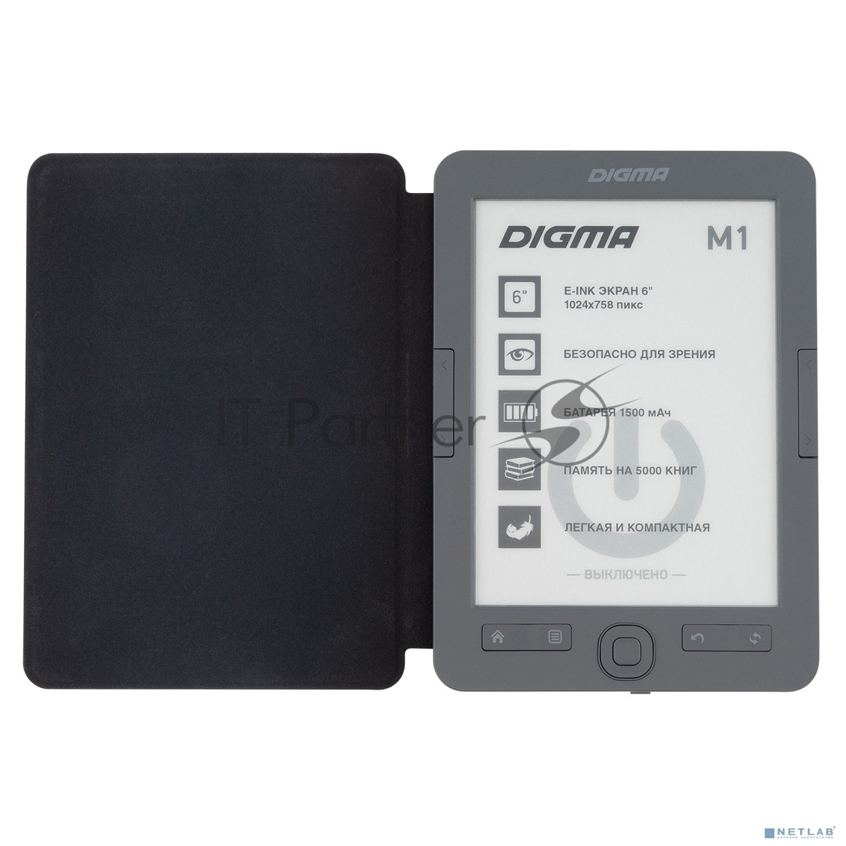 Электронная книга Digma M1 6″ E-ink HD 758×1024 600MHz 128Mb/4Gb/SD/microSDHC темно-серый (в компл.:обложка)