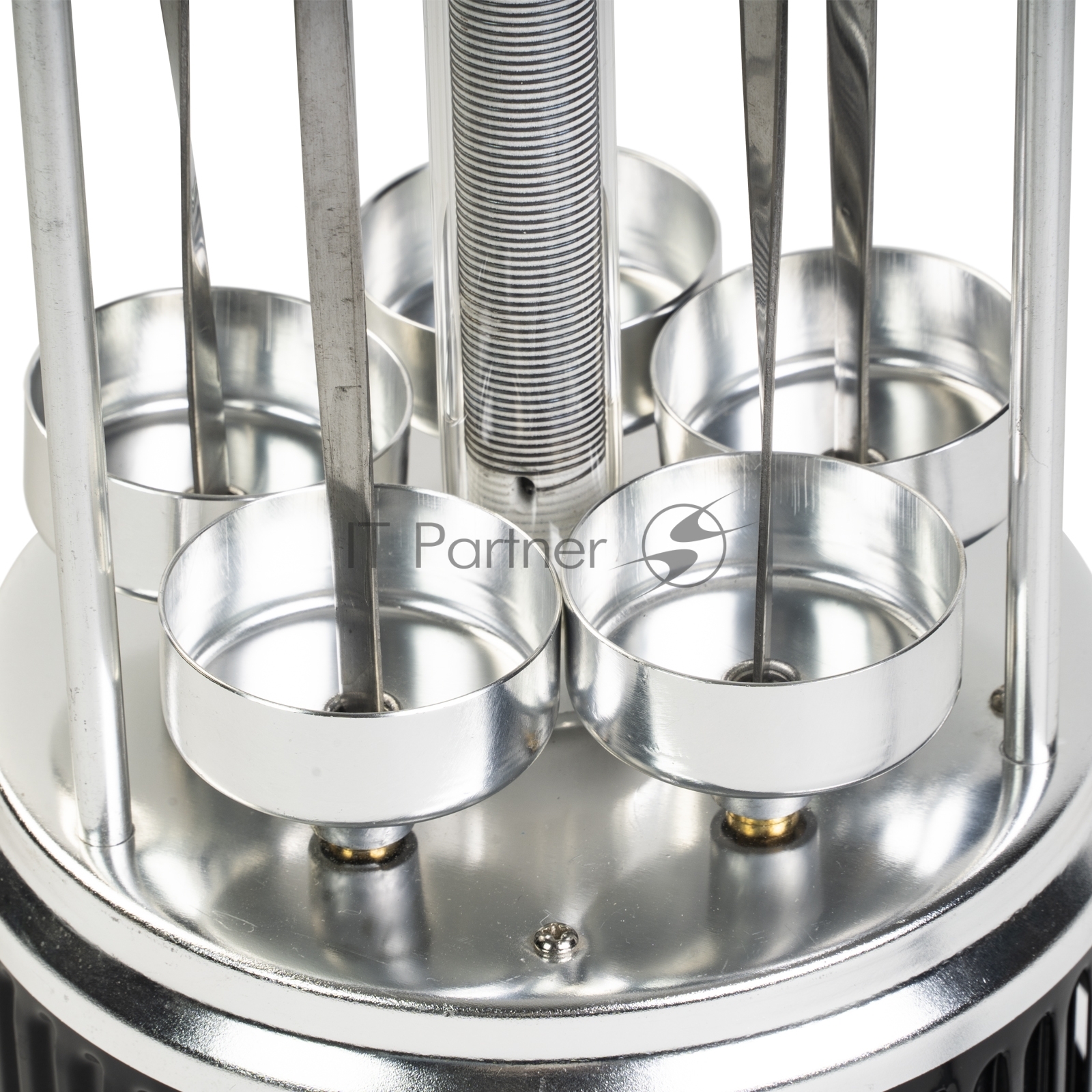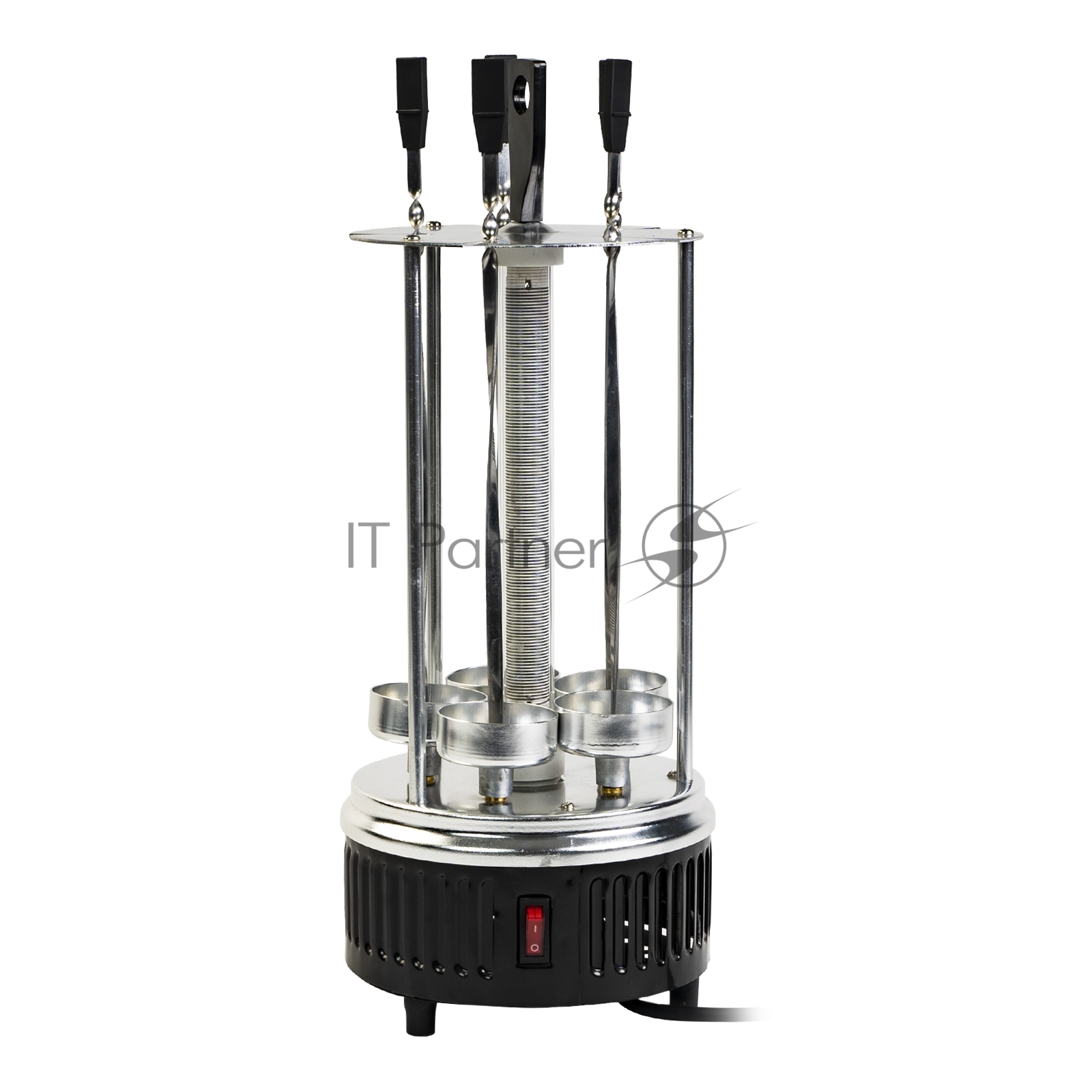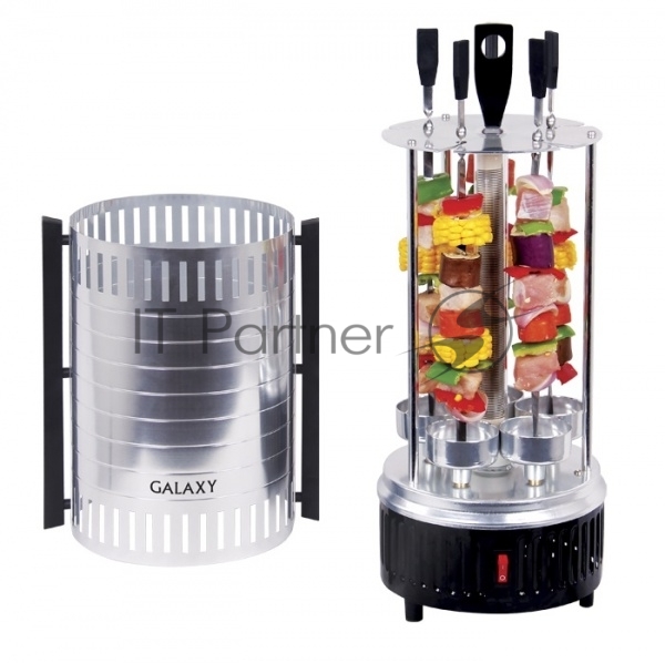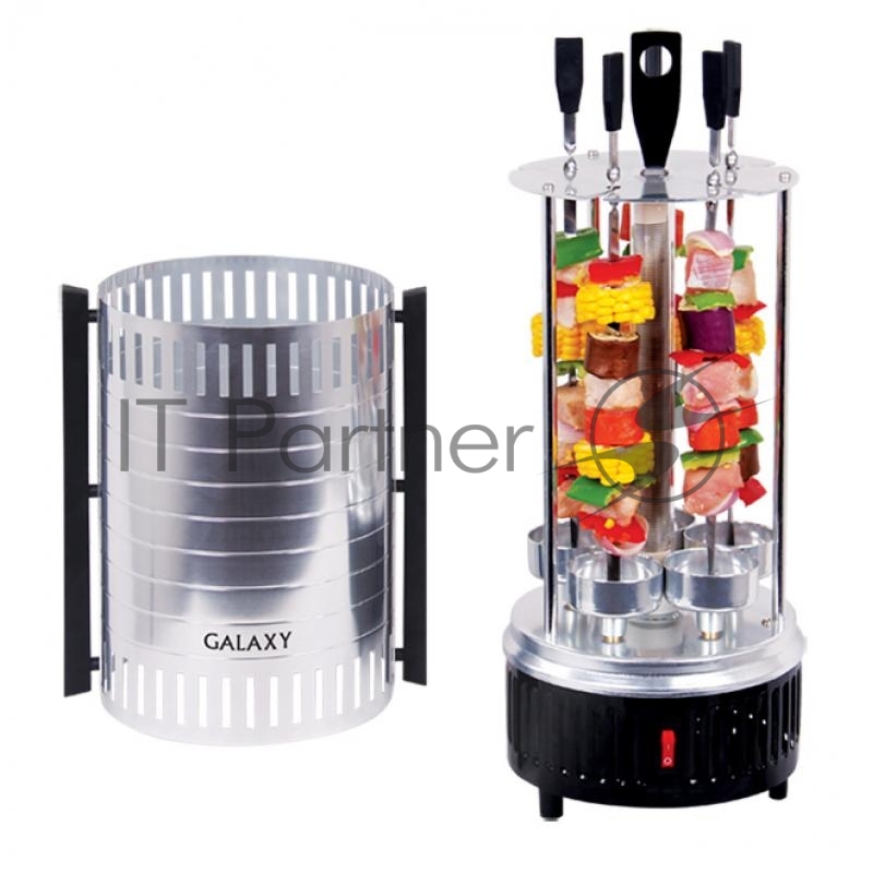 Электрошашлычница Galaxy Line GL 2610, серый, 1000 Вт, 5 шампуров из высококачественной нержавеющей стали, автоматическое вращение шампуров на 360°, долговечный керамический нагревательный элемент, защитный кожух из пищевого алюминия