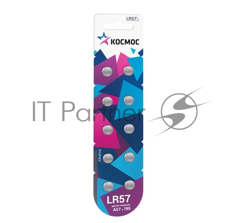 Элемент питания алкалиновый «таблетка» AG7 LR57 (блист.10шт) Космос KOCG7(LR57)10BL