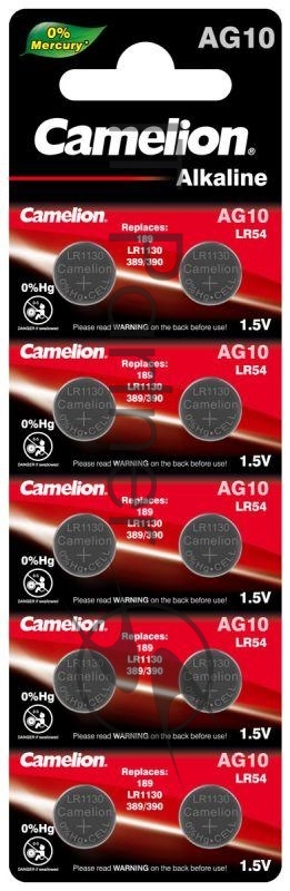 Элемент питания алкалиновый «таблетка» G10 Mercury Free AG10-BP0%Hg 389A/LR1130/189 BL-10 (блист.10шт) Camelion 12818