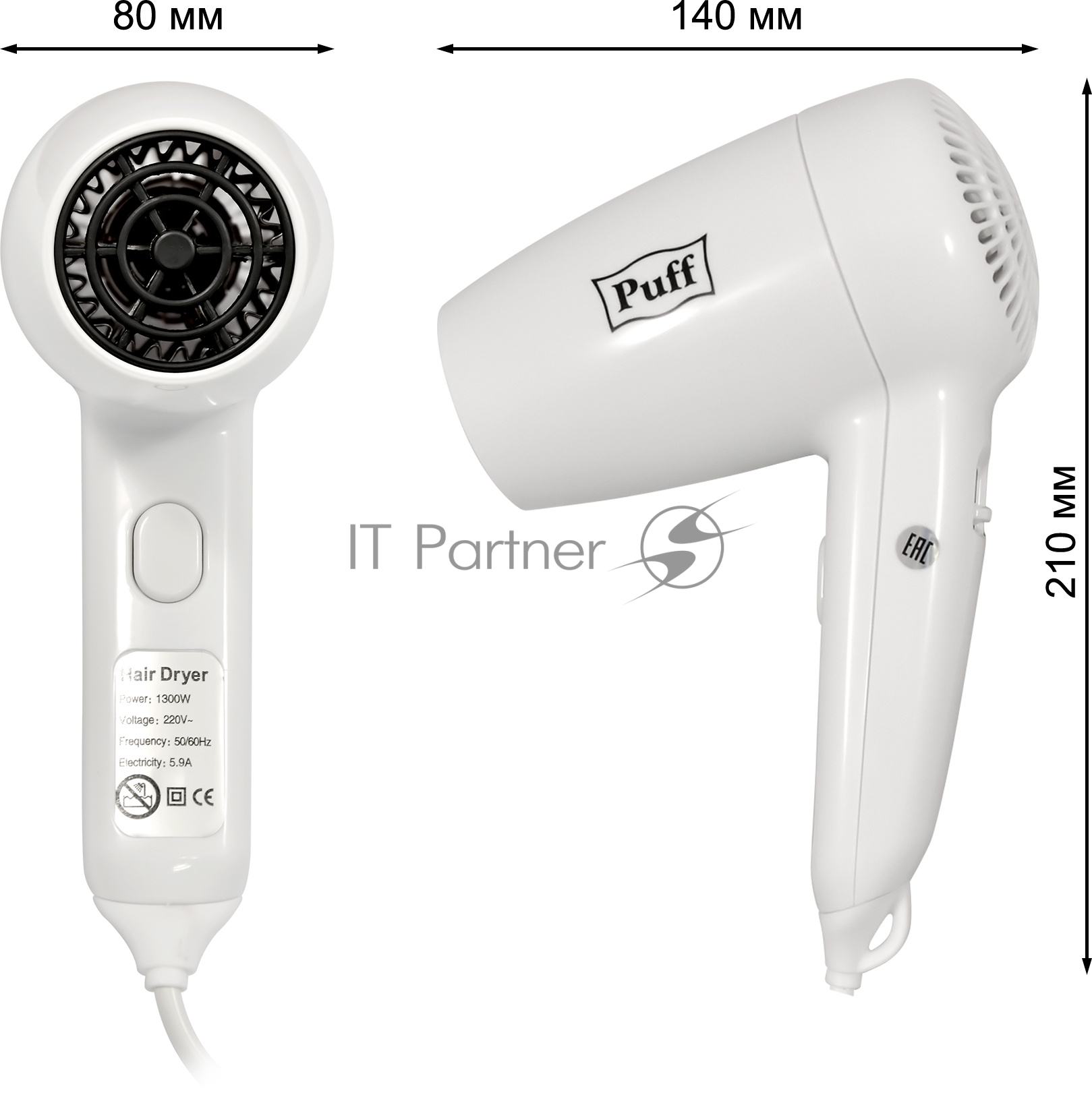 Фен Puff 1300 1300Вт белый