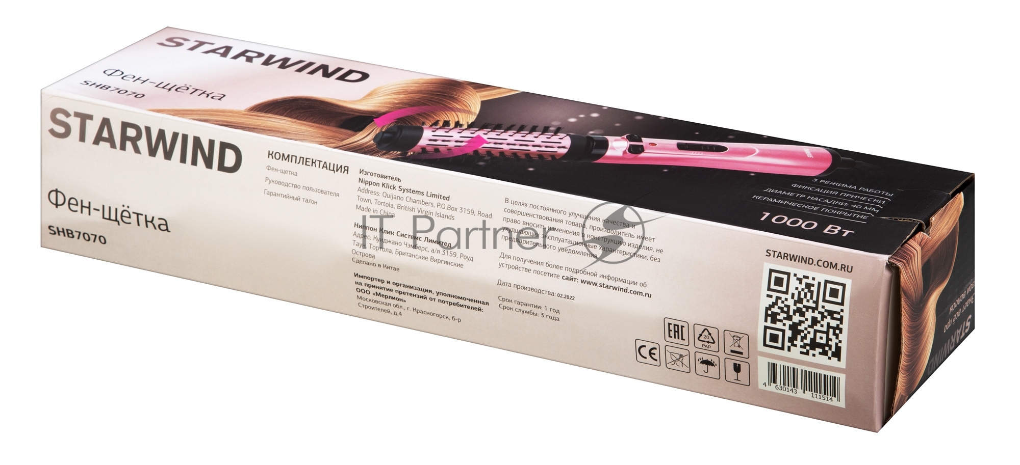 Фен-щетка Starwind SHB 7070 1000Вт фиолетовый