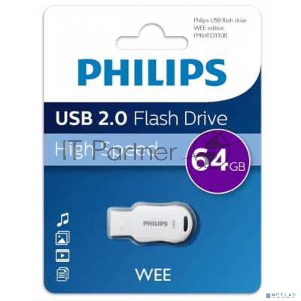 Флеш диск 64GB PHILIPS WEE 2.0 64GB, USB 2.0