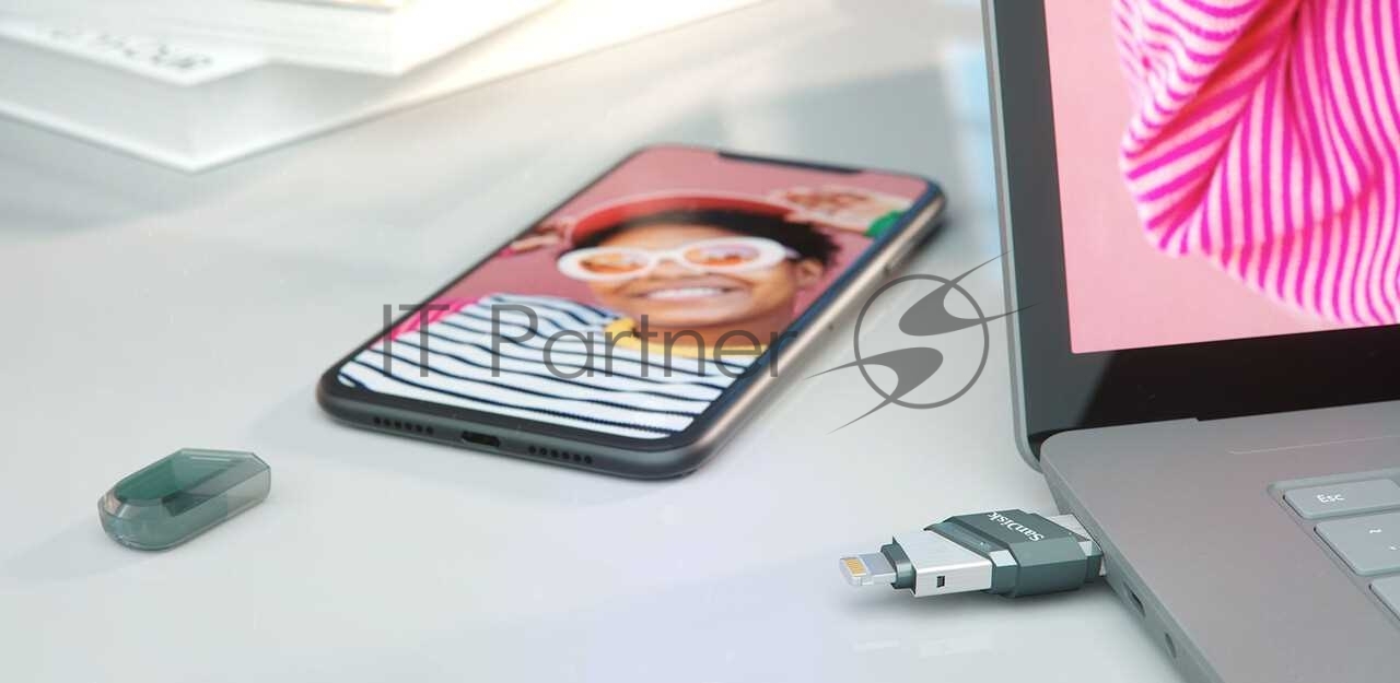 Флеш диск Sandisk 128Gb iXpand Flip SDIX90N-128G-GN6NE USB3.1 зеленый/серебристый