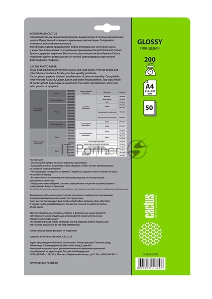 Фотобумага Cactus CS-GA420050 глянцевая А4 200 г/м2 50 листов