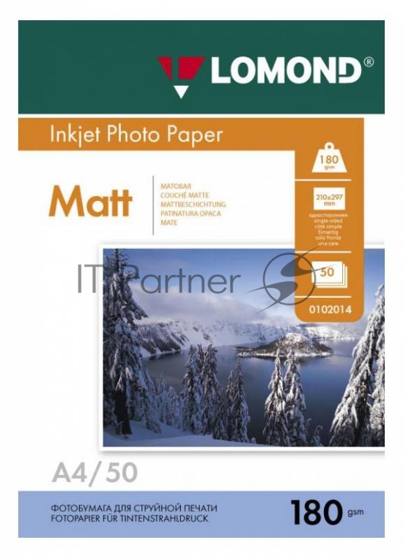 Фотобумага Lomond 0102014 A4/180г/м2/50л./белый матовое для струйной печати