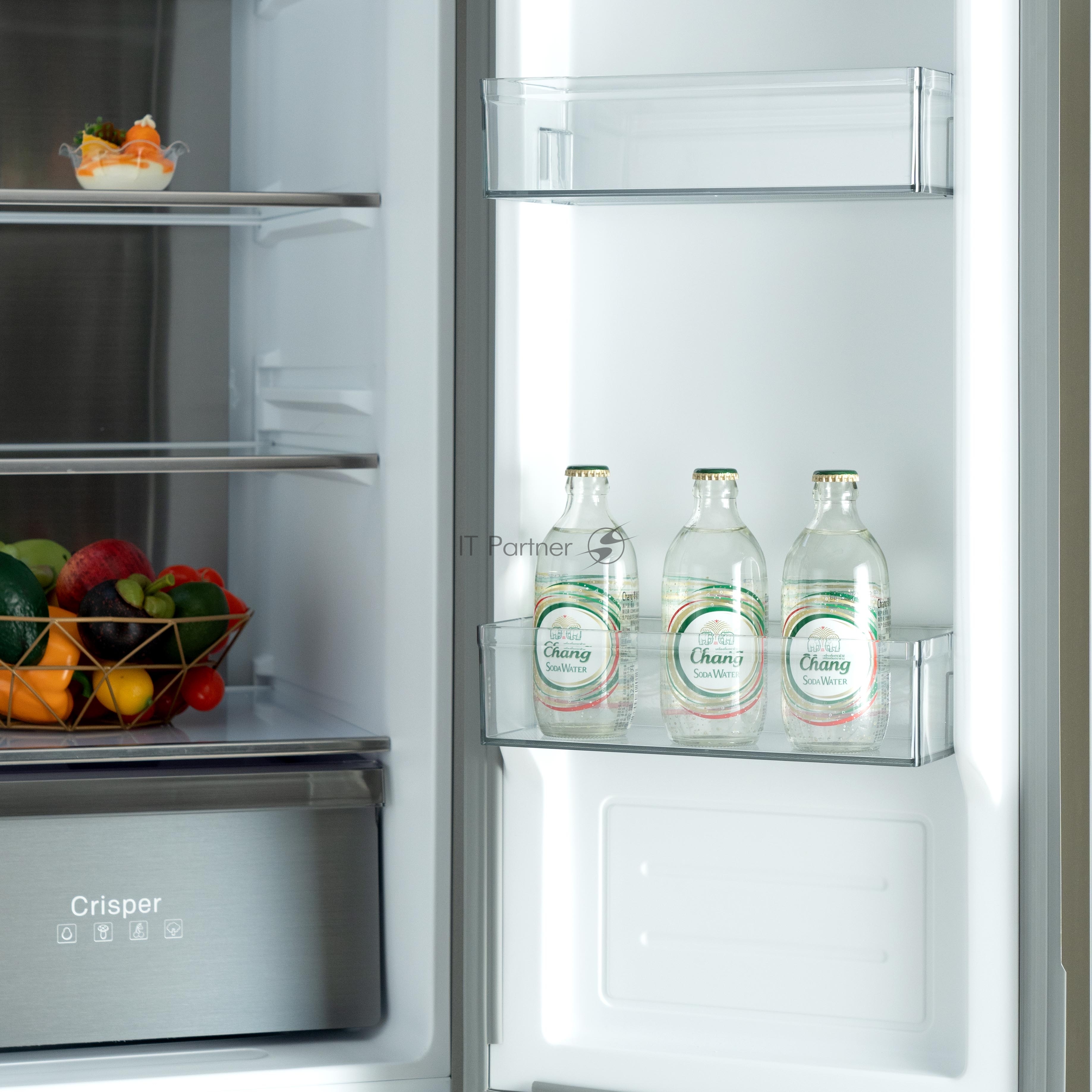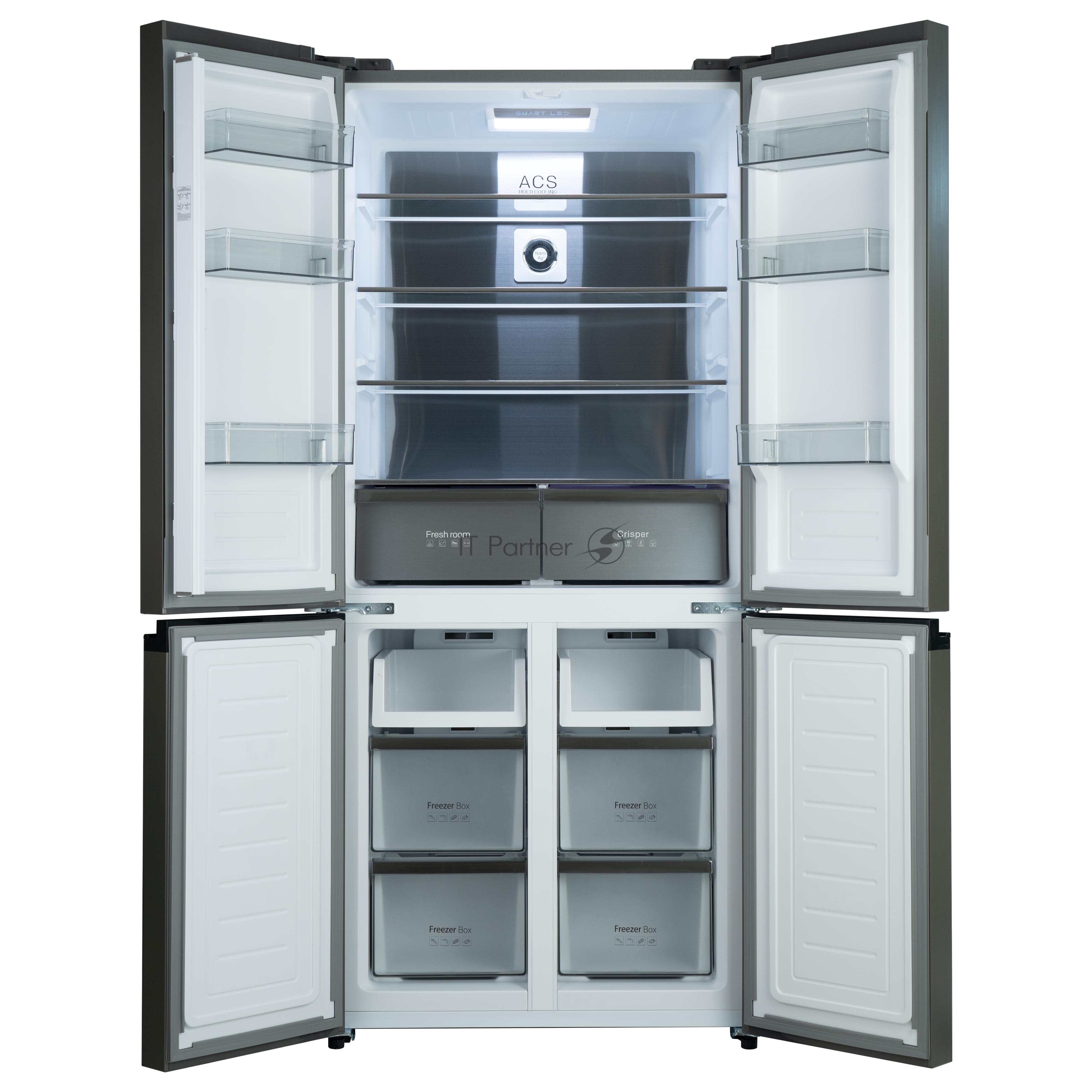 Холодильник Бирюса CD 496 TBG текстурированное черное стекло трёхкамерный 334/162л морозилка снизу, NoFrost, Side by Side