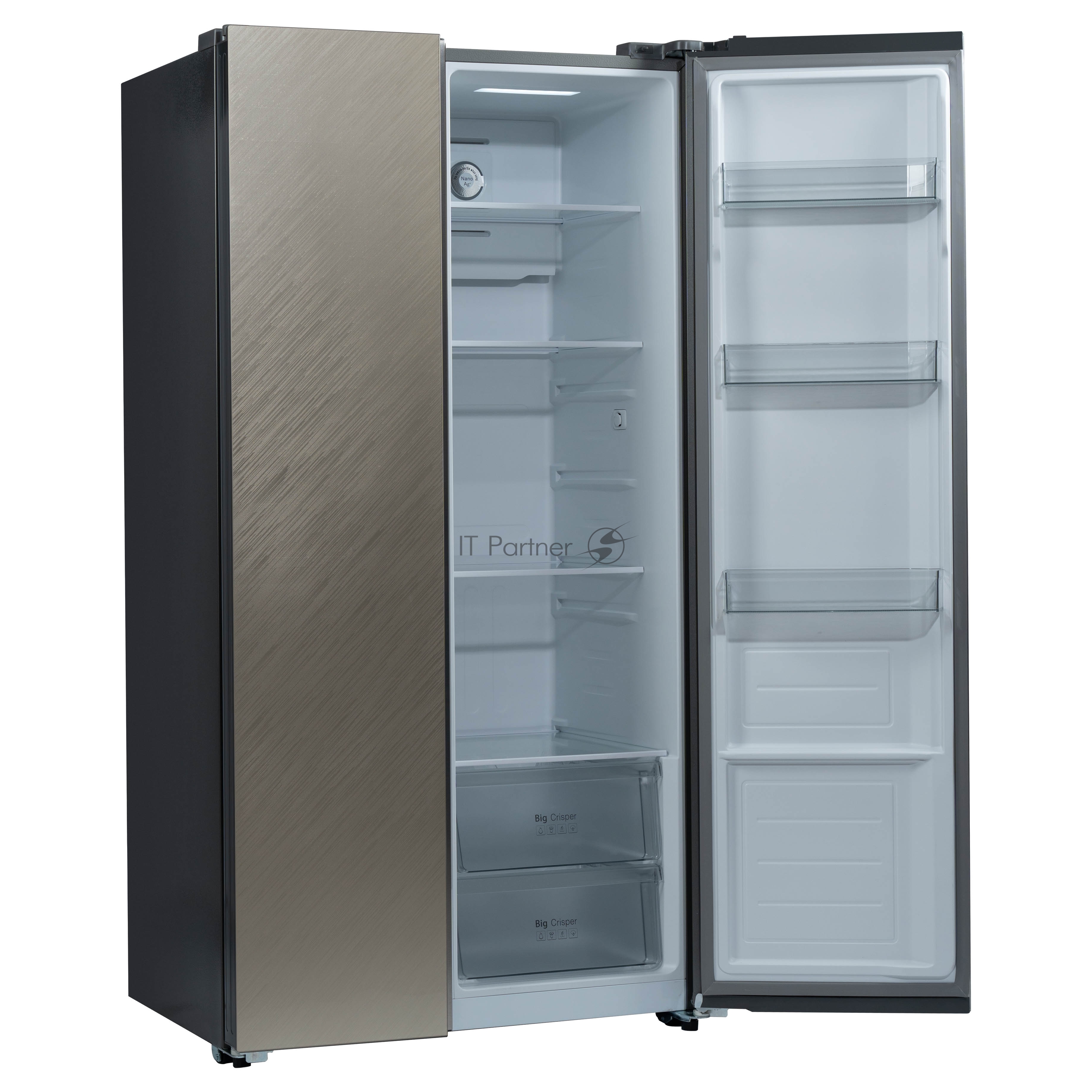 Холодильник Бирюса SBS 541 TGG текстурированное бежевое стекло двухкамерный 343/198 л морозилка слева, NoFrost, Side-by-side