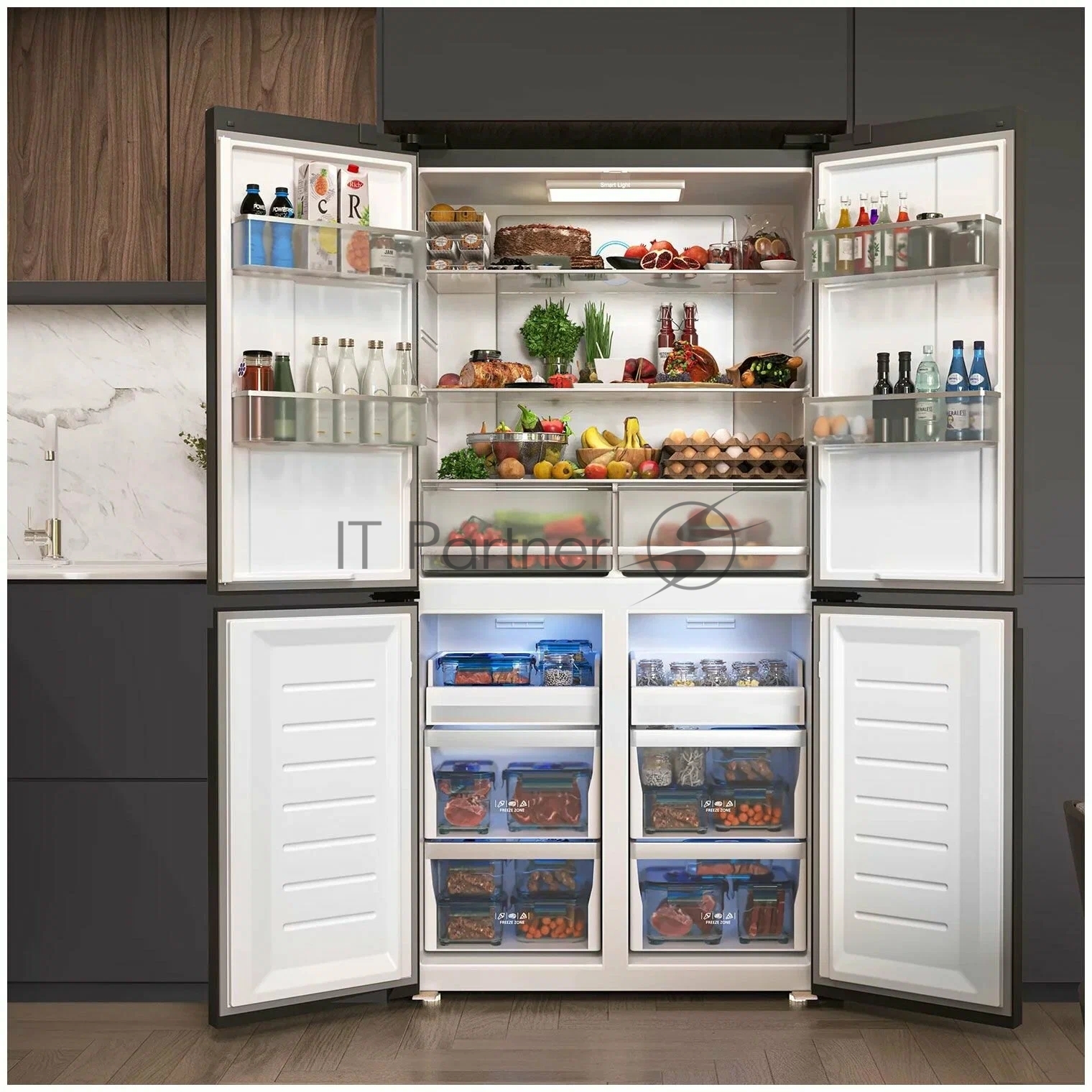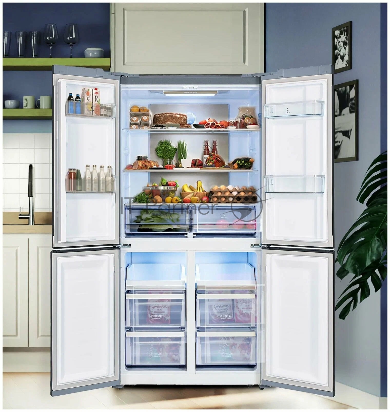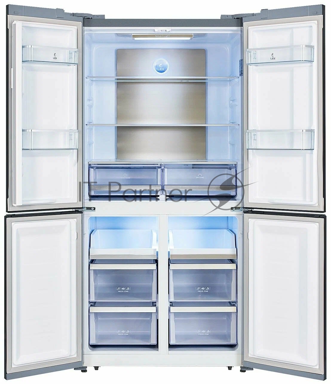 Холодильник LEX LCD505GbGID серый трехкамерный 321/144л морозилка снизу, No Frost, Side by Side