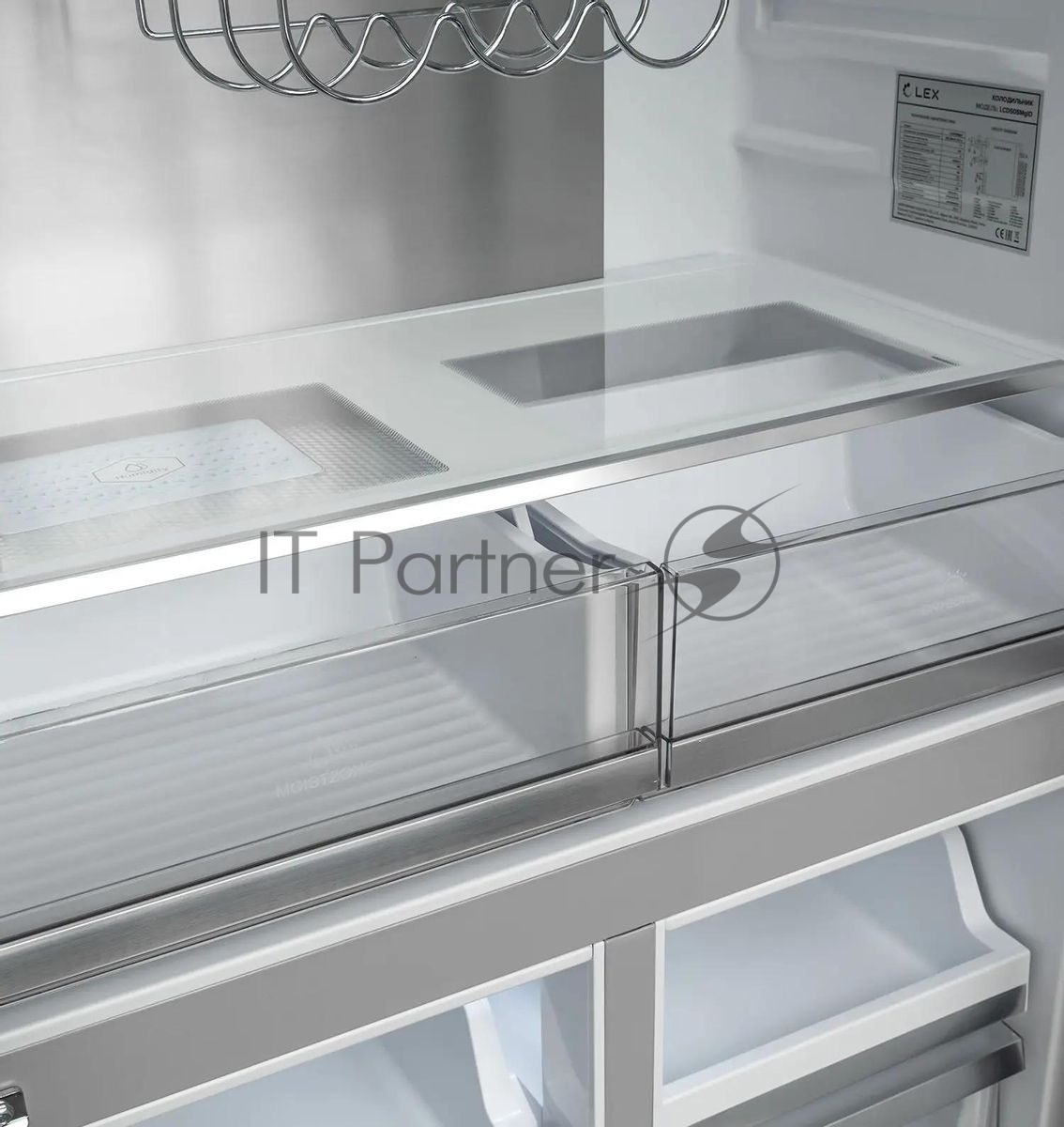 Холодильник Lex LCD505WOrID белый/оранжевый трехкамерный 321/144л морозилка снизу, No Frost, Side by Side