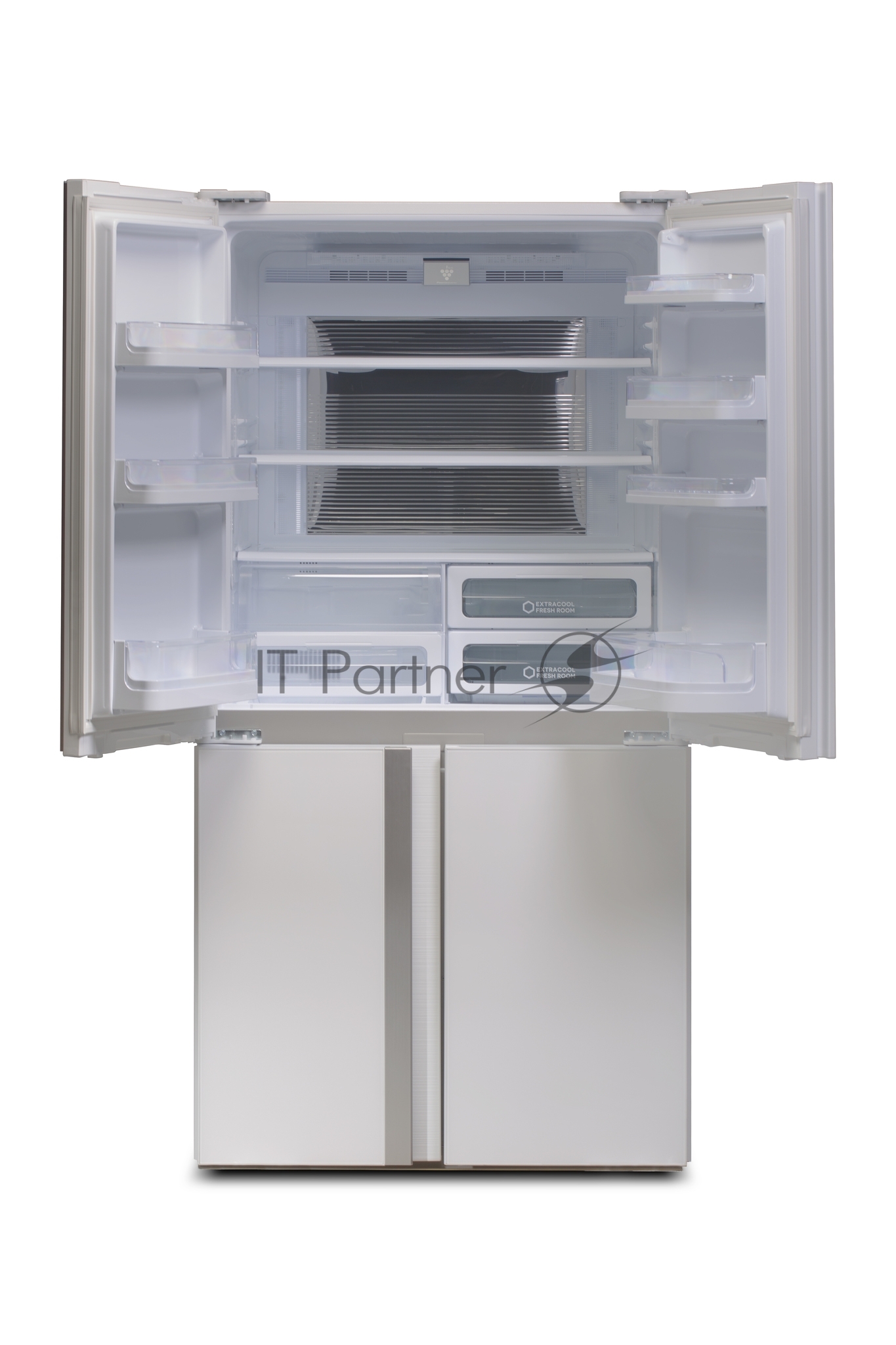 Холодильник Sharp SJGX98PWH белое стекло четырехкамерный 394/211л морозилка снизу